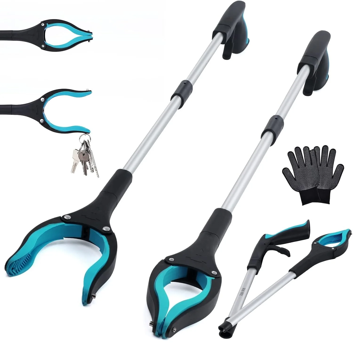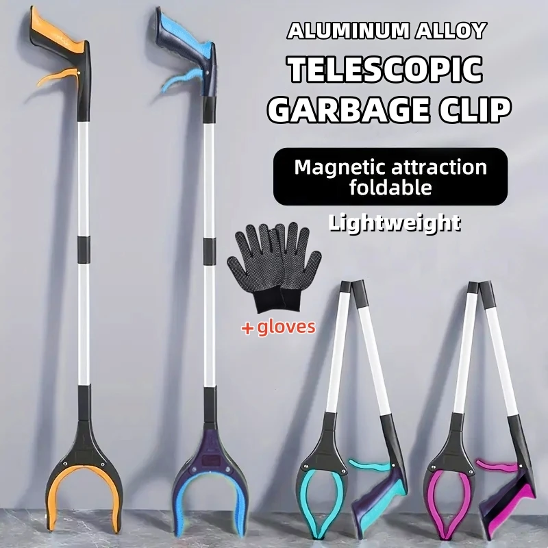 32" Aluminum Alloy Garbage Clip Upgrade Foldable Grabber Reacher Tool Lightweight Trash Claw Grabbers Magnetic Pick Up Stick