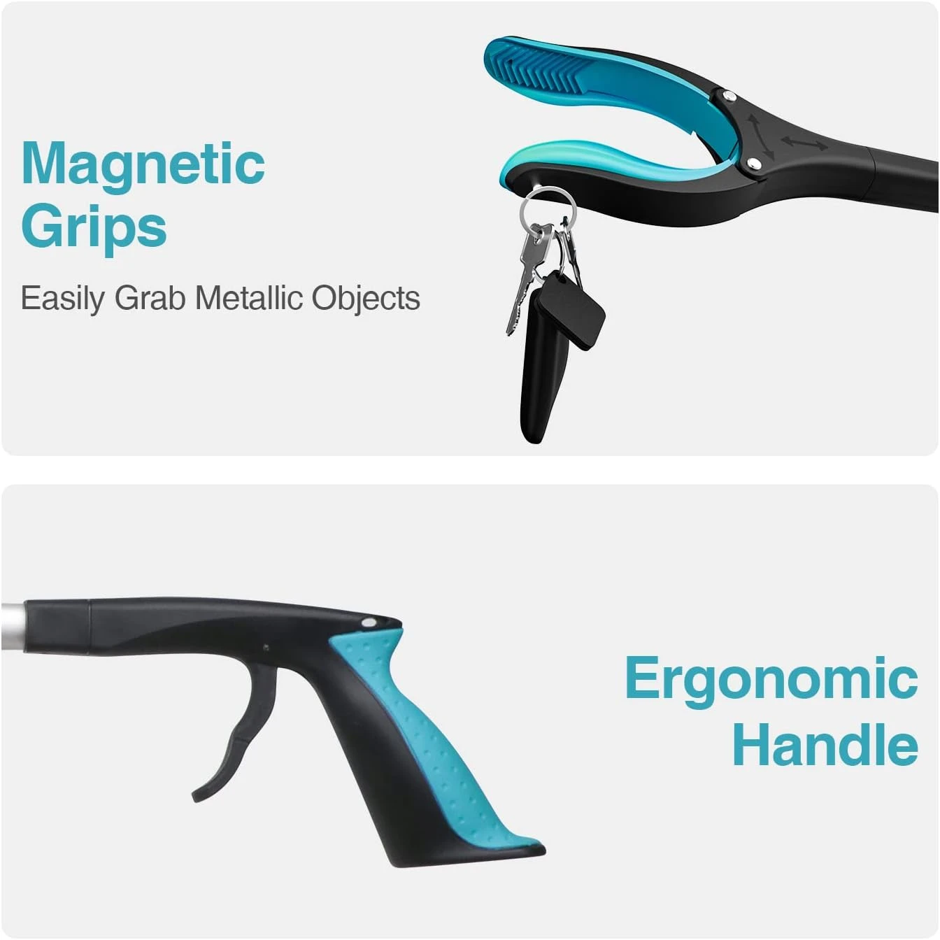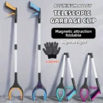 32″ Aluminum Alloy Garbage Clip Upgrade Foldable Grabber Reacher Tool Lightweight Trash Claw Grabbers Magnetic Pick Up Stick