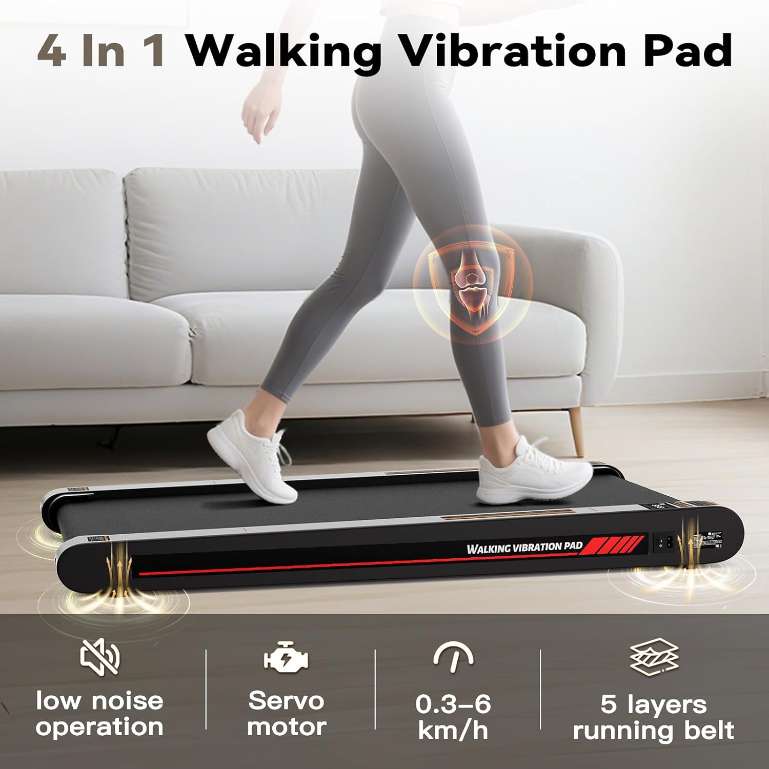 - 【Vibration Walking Pad】: This walking pad combines walking and vibration functions. It has a speed range of 0.3-6km/h and the vibration function can last for 5 minutes. The vibration function allows you to relax your body after walking.