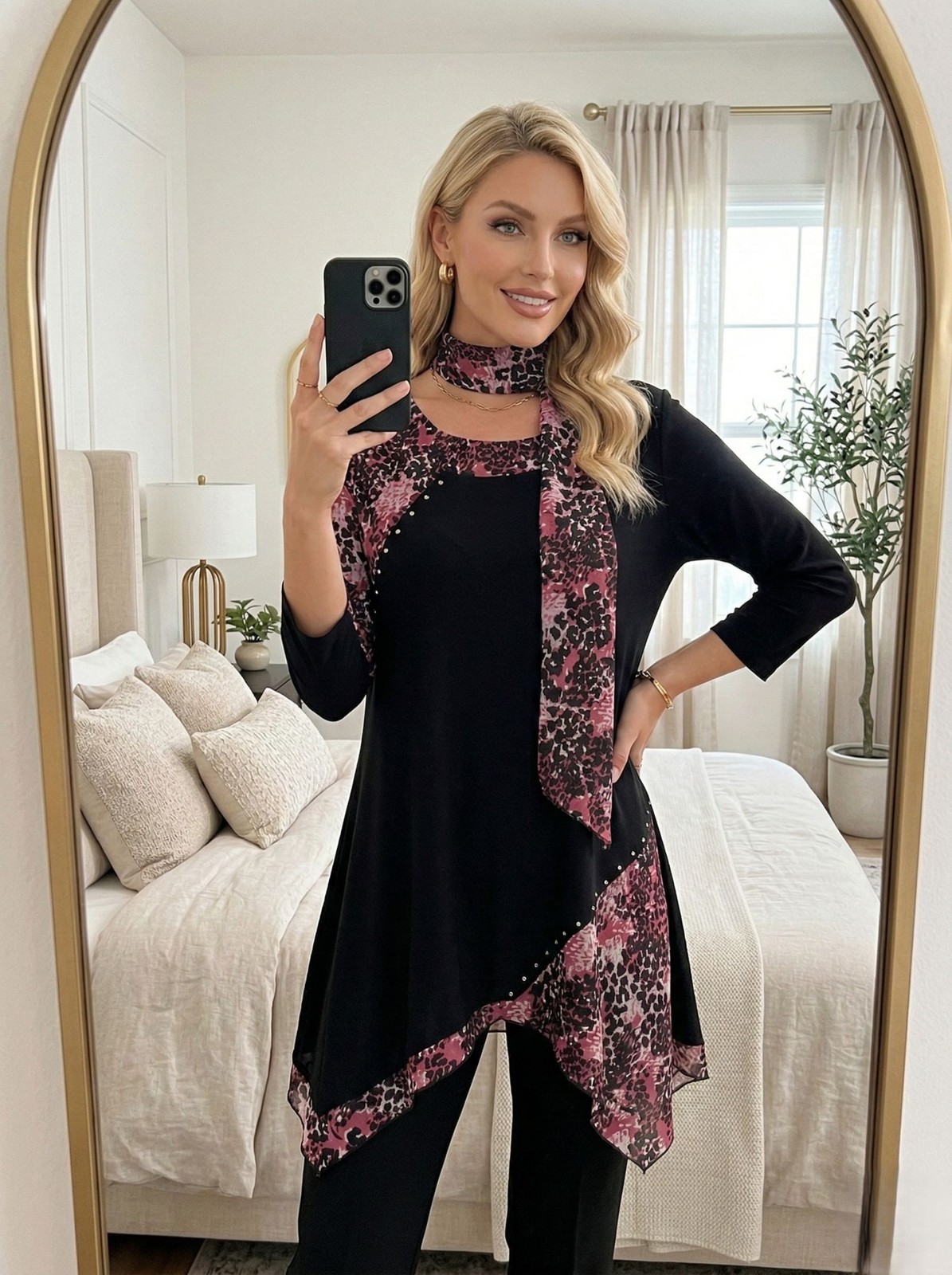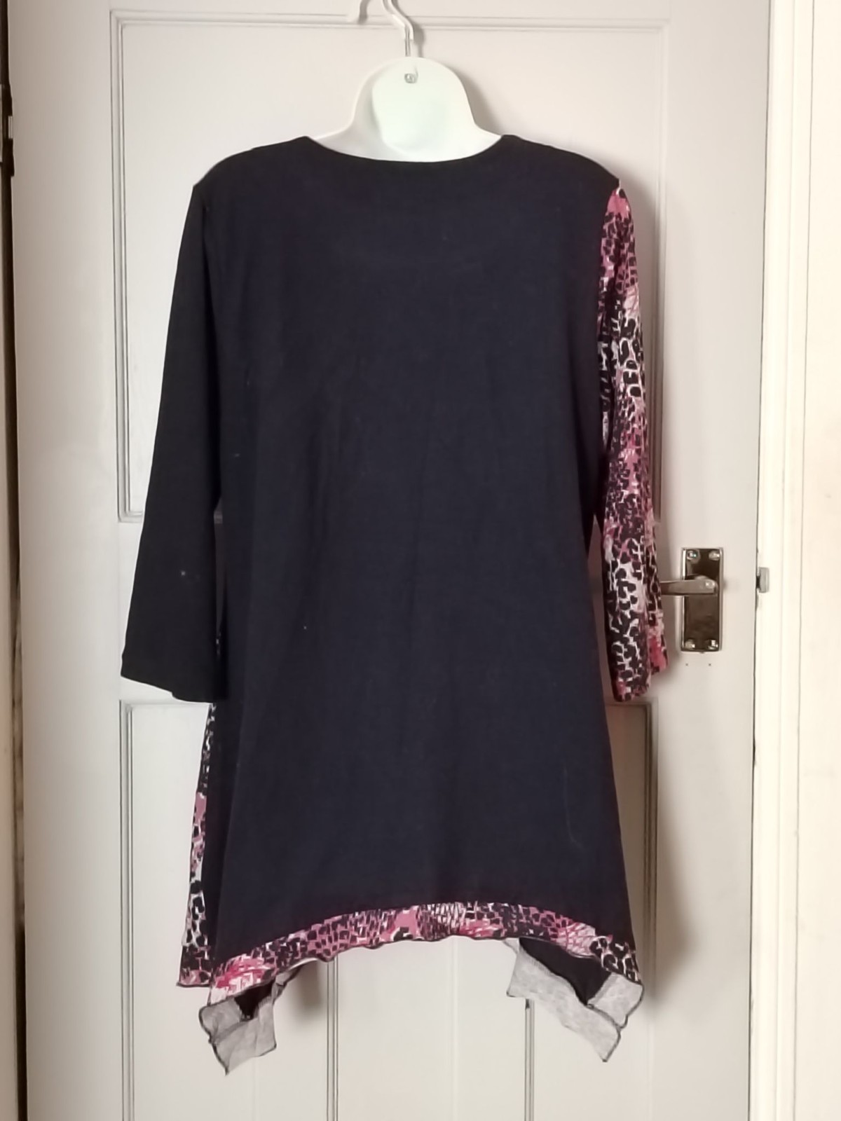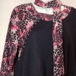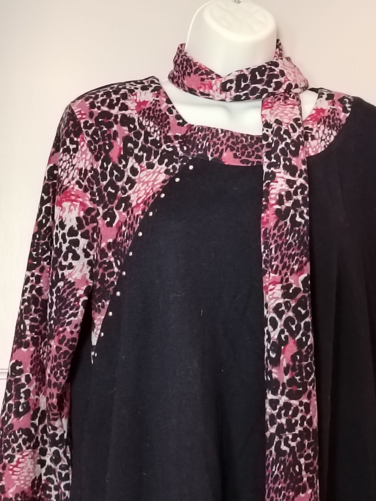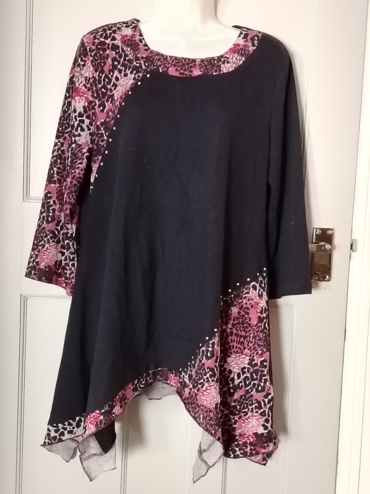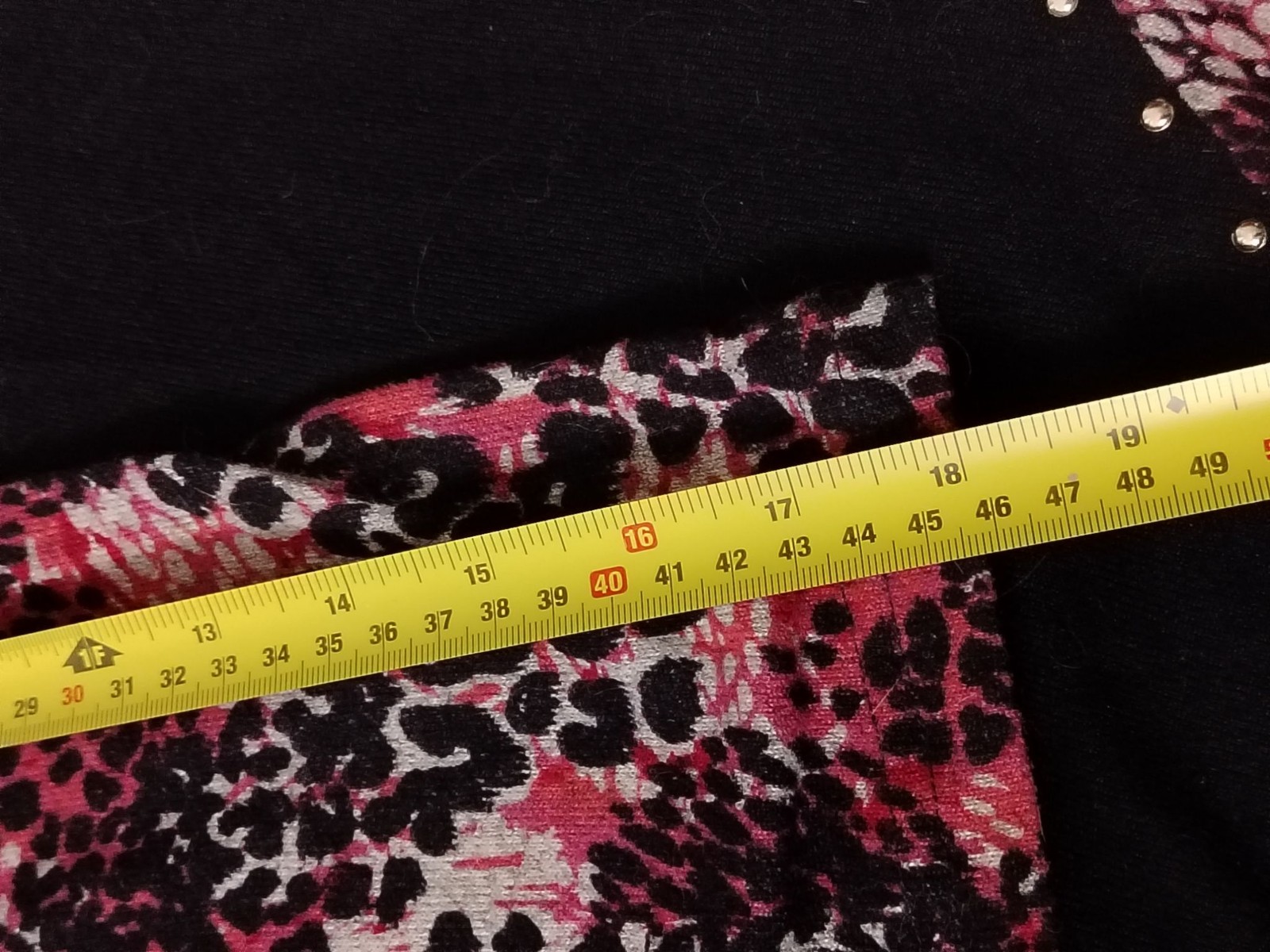 Be the first to review “Anna Rose Tunic Womens L Black Pink Animal Print Scarf Studded Asymmetric Hem”