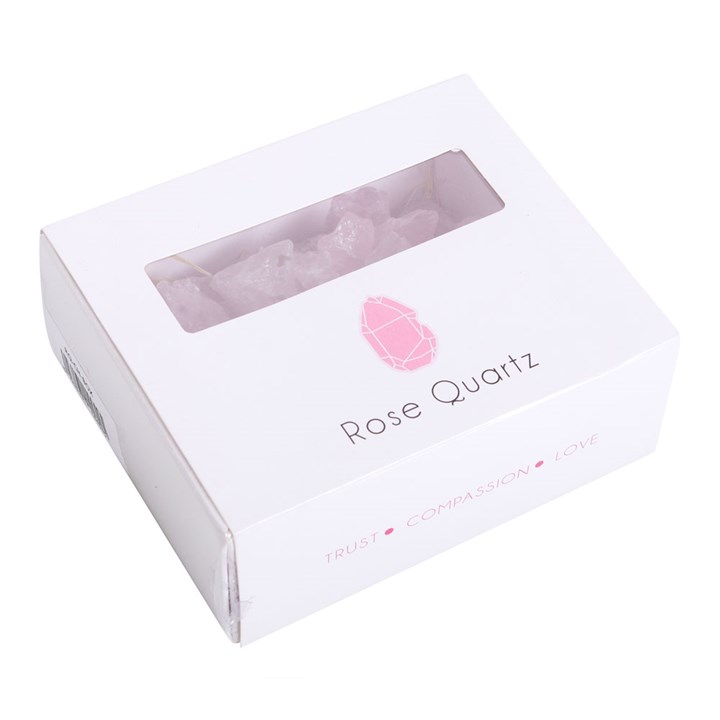 For centuries crystals have been used for a variety of purposes. From decoration and jewellery to healing, magic and for attracting positive energy. Rose Quartz is considered the stone of love. It promotes unconditional love, peace, compassion and forgiveness. It restores trust and harmony in relationships and promotes self worth, friendship and emotional healing. Trust. Compassion. Love Each box contains approximately 280g of loose Rose Quartz raw crystal chips in various sizes. Mined in Brazil. Product Dimensions: H4.5cm x W11.5cm x D9.2cm Packaged Dimensions: H4.5cm x W11.5cm x D9.2cm