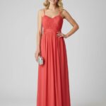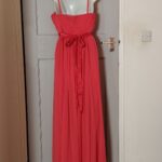 Coast Dress Womens Coral Chiffon Pleated Spaghetti Strap Maxi Gown Formal Sash