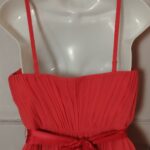Features: Pleated chiffon overlay, sweetheart bust, spaghetti adjustable straps, satin waist sash (ties at back)