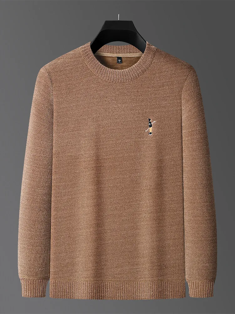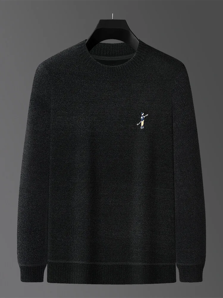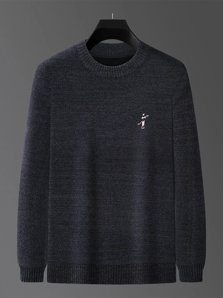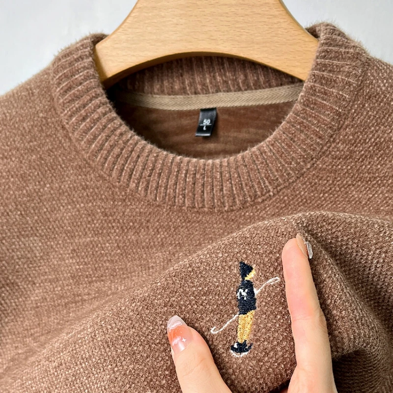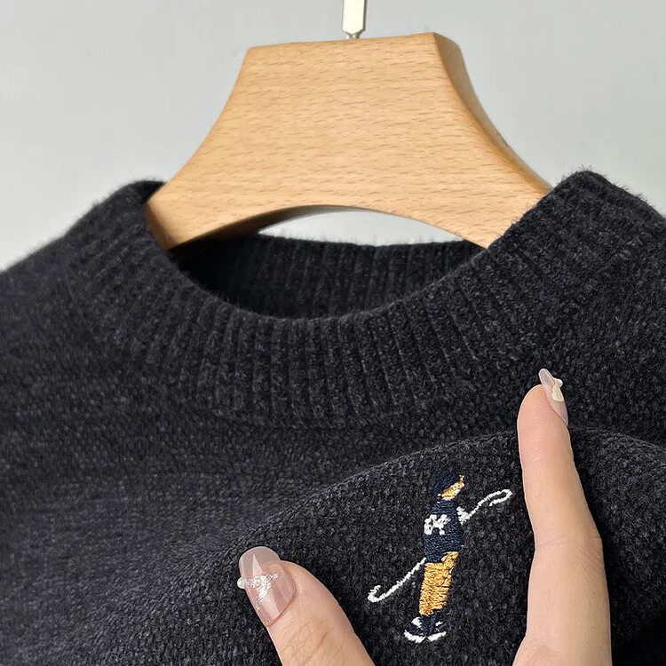 Designer Round Neck Solid Colour Exquisite Embroidery Men's Sweater Casual Warm Thick Knitted Sweater
