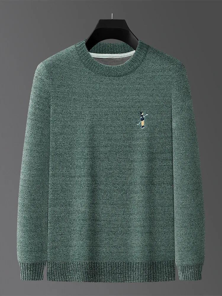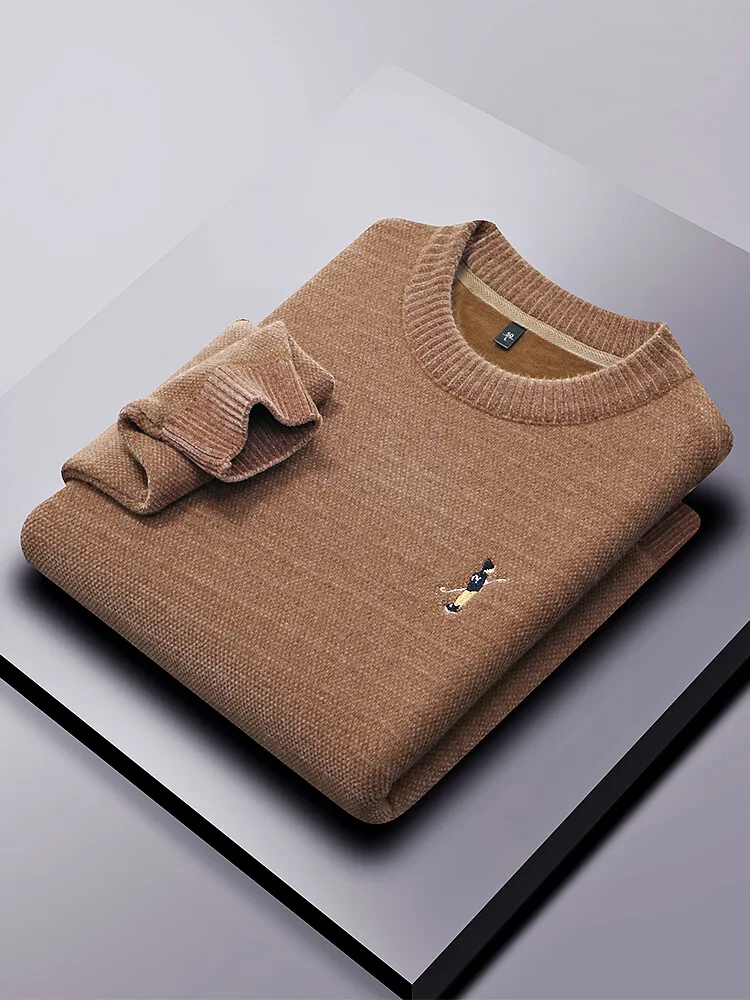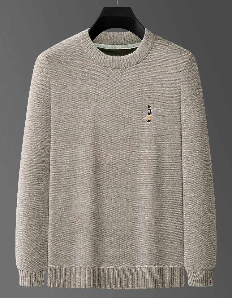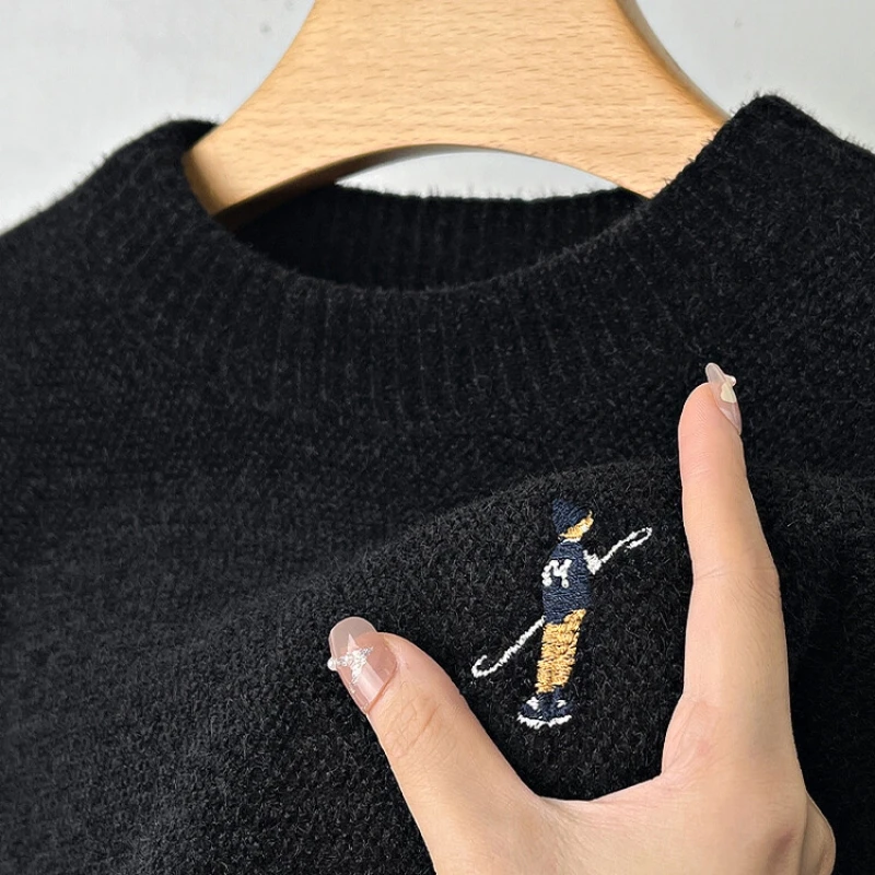 Designer Round Neck Solid Colour Exquisite Embroidery Men's Sweater Casual Warm Thick Knitted Sweater