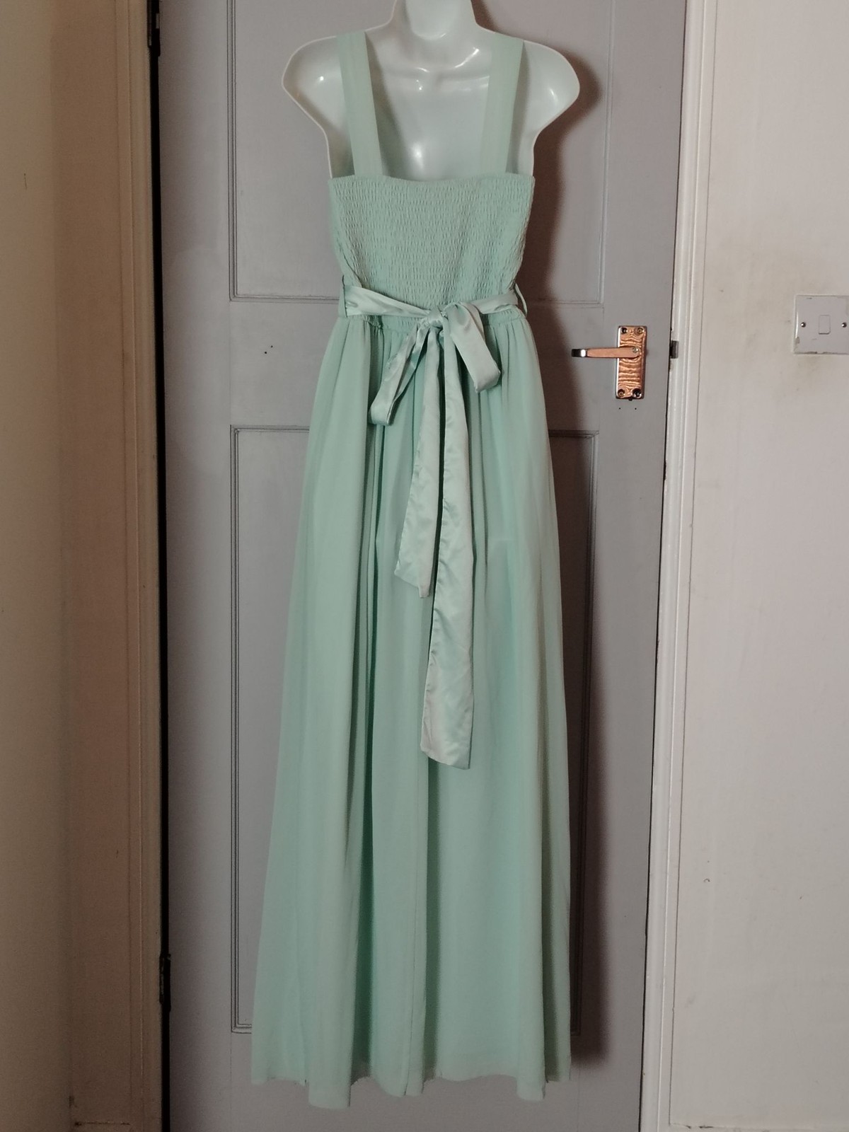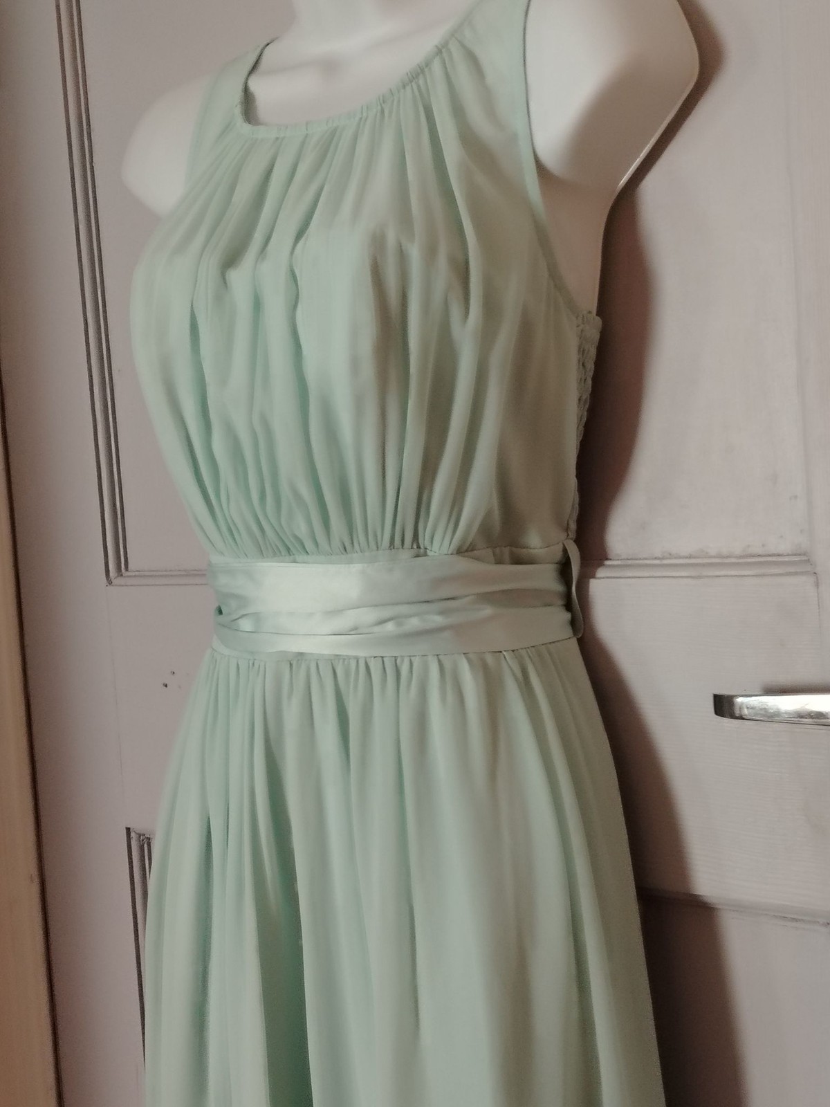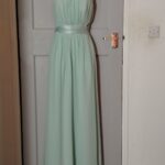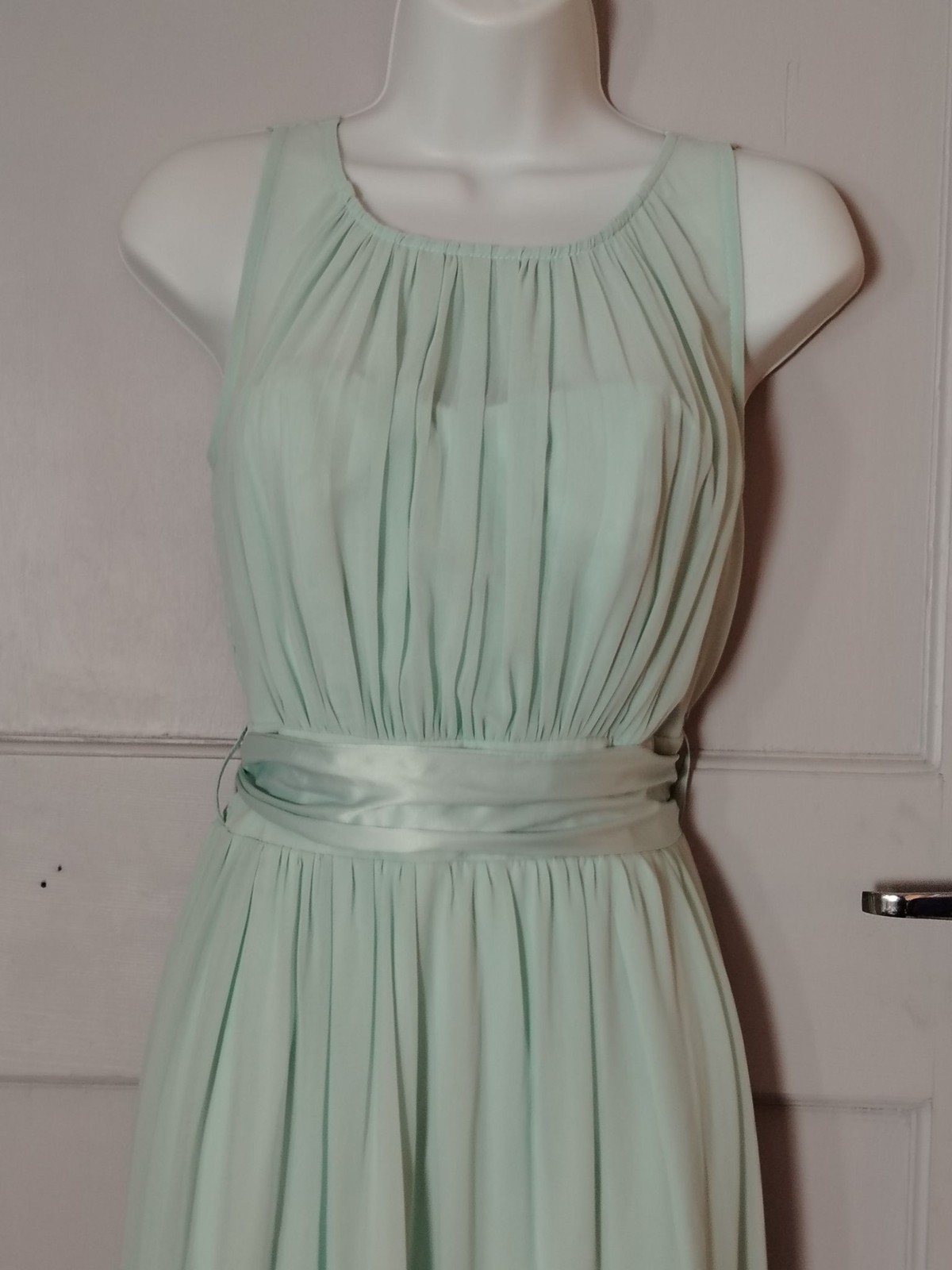 Dorothy Perkins Dress Womens 10 Mint Chiffon Maxi Pleated Smocked Sash Formal
