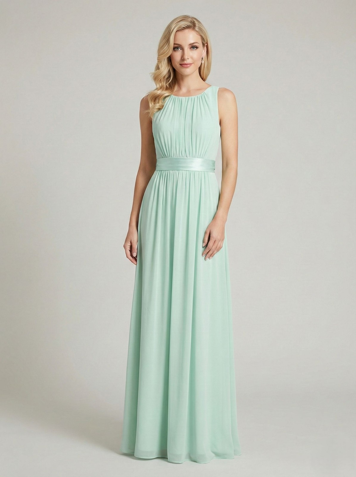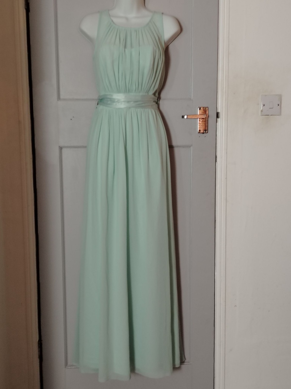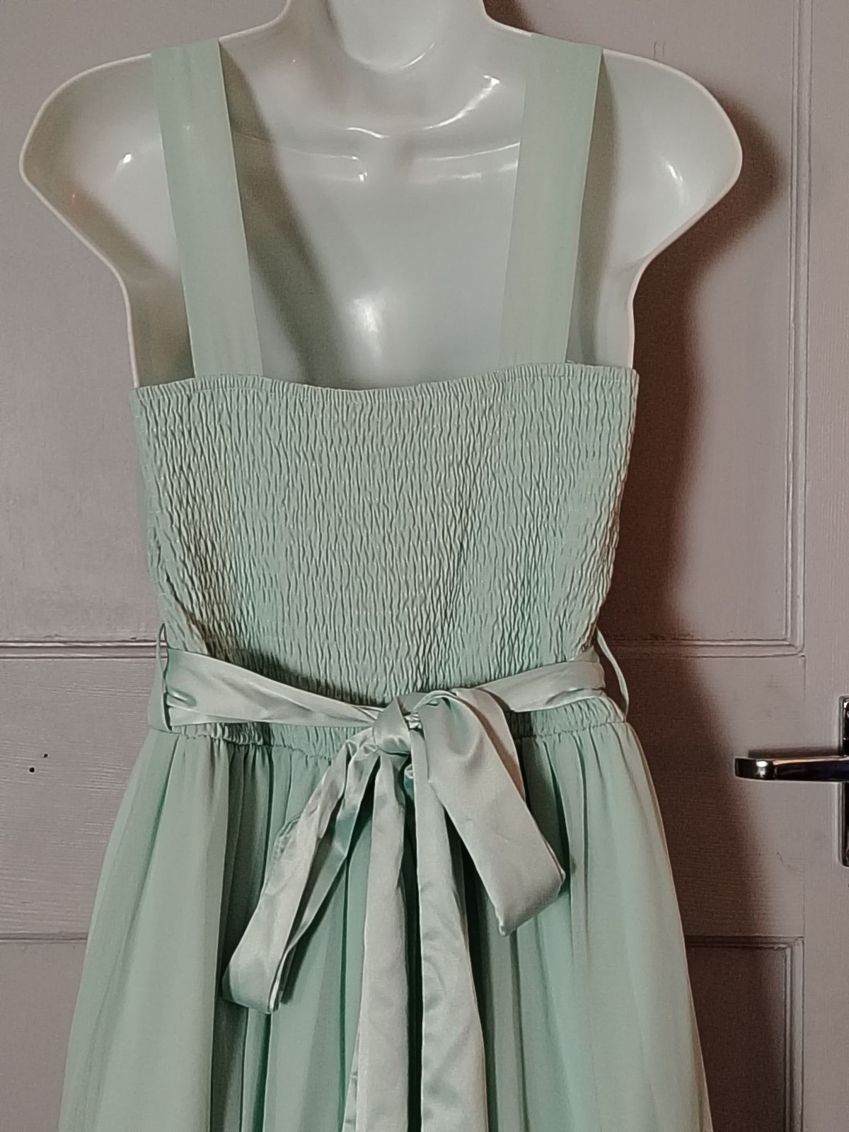 Dorothy Perkins Dress Womens 10 Mint Chiffon Maxi Pleated Smocked Sash Formal