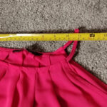 • Features: Pleated detail at the neckline, spaghetti straps, and a curved hem.