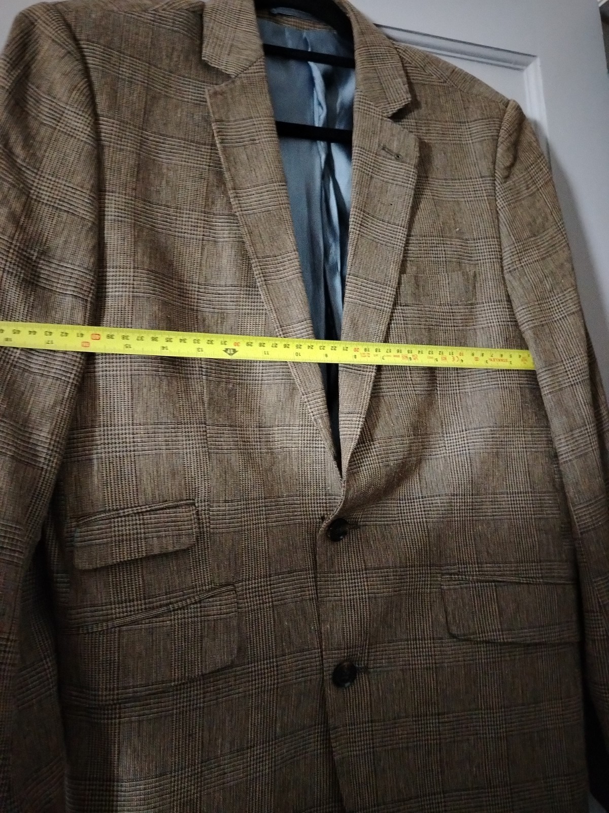 Feraud vintage brown check wool blend blazer jacket size tall L XL very good