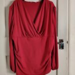 GRACE KARIN Red Wrap Top UK 20 22 2XL Long Sleeve Ruched Blouse Party Pre-owned