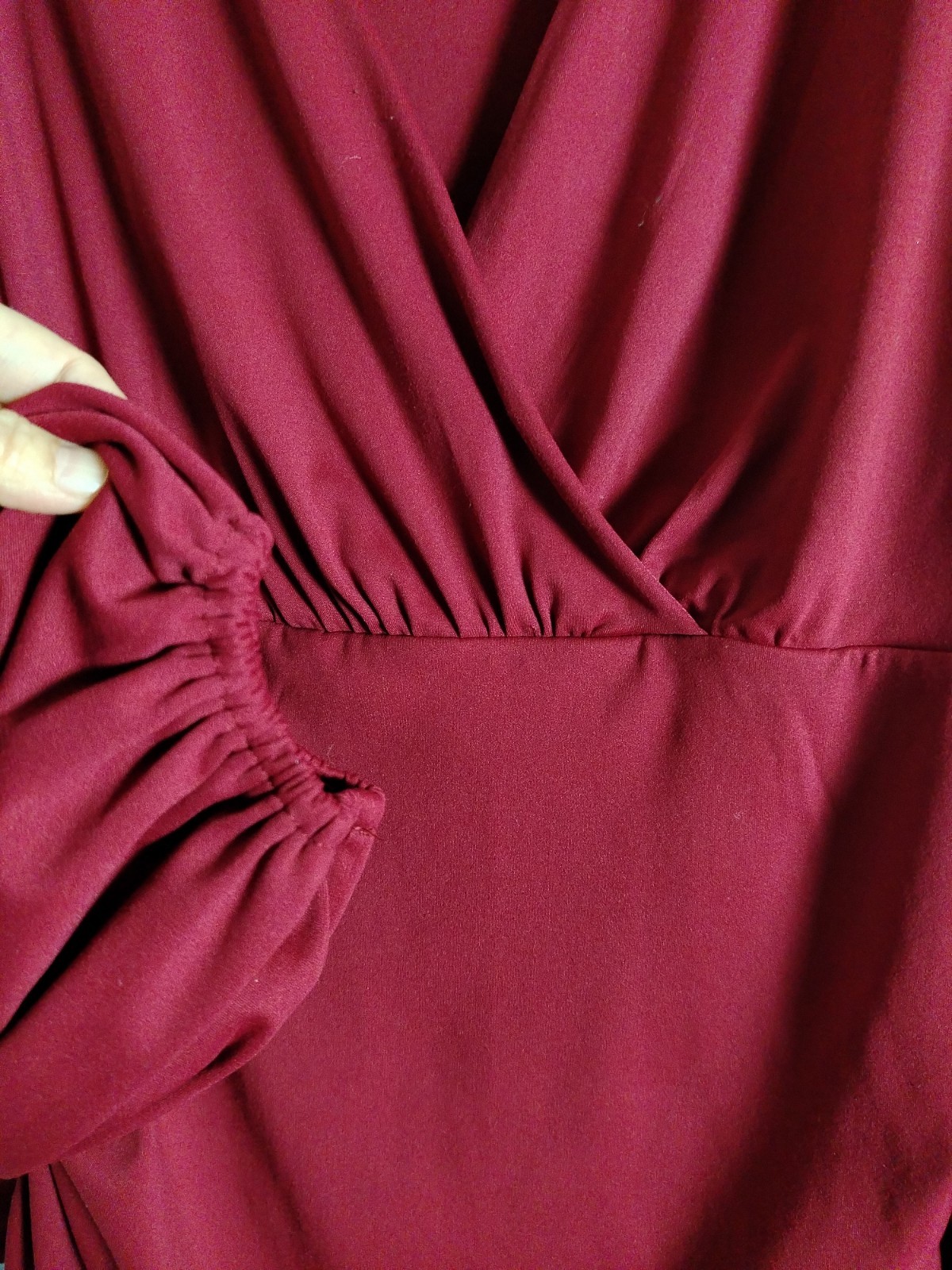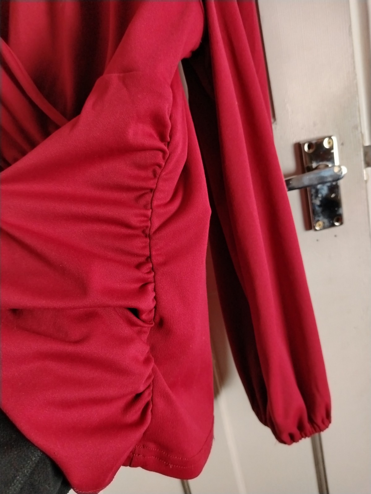​Design: Ruched sides, elasticated cuffs, V-neck