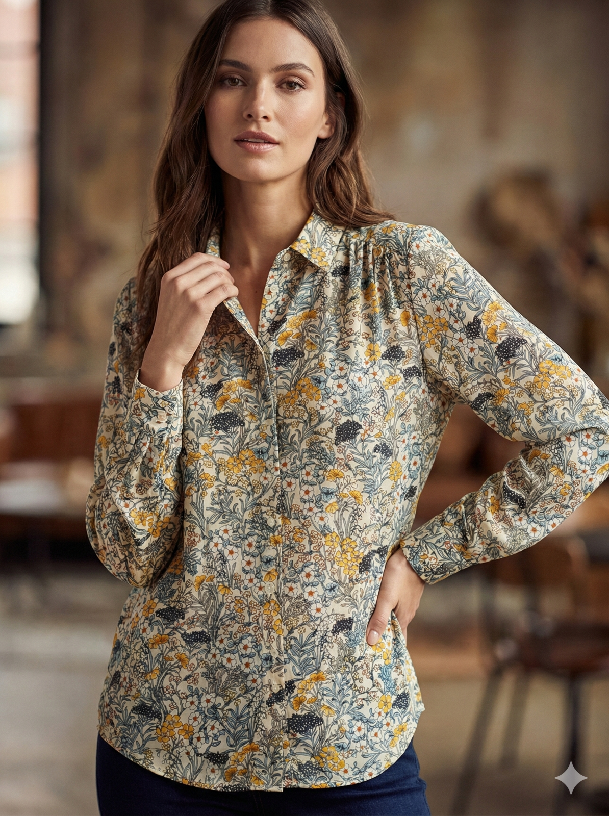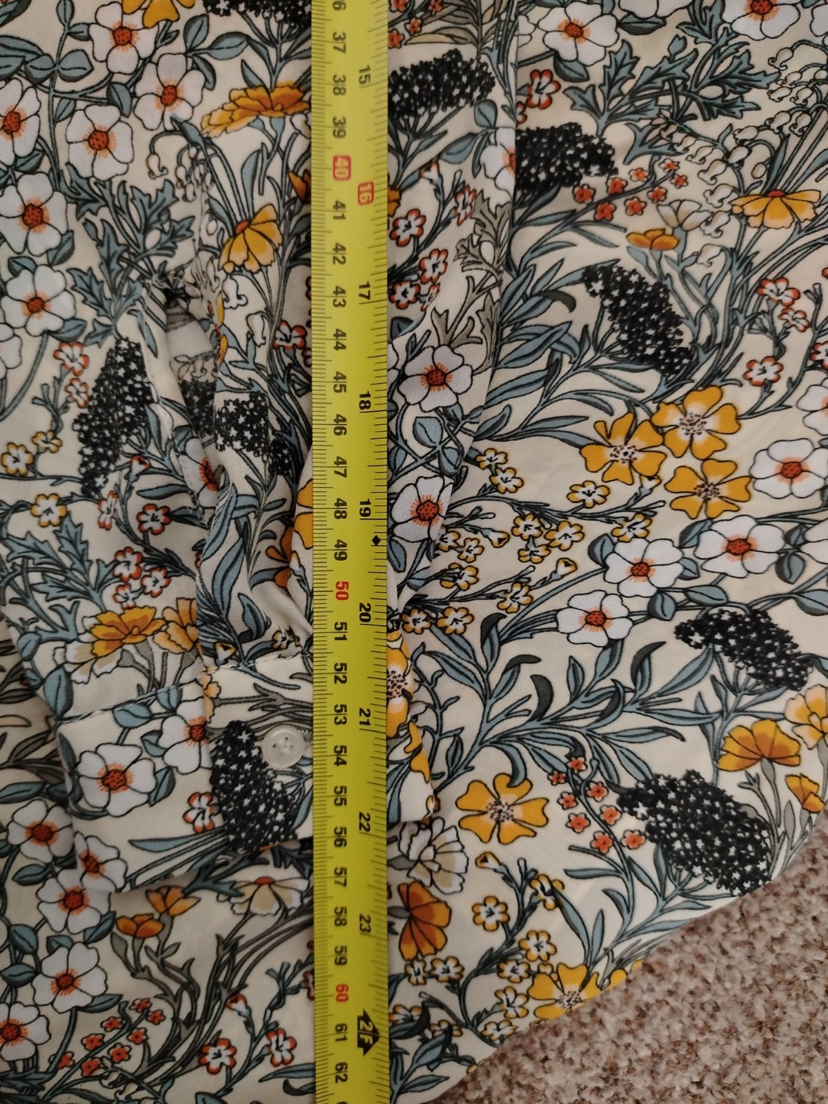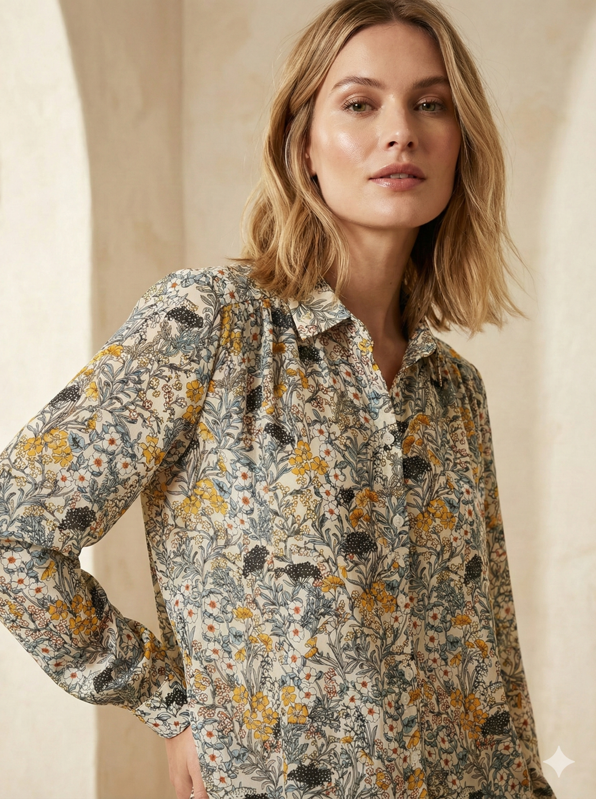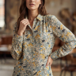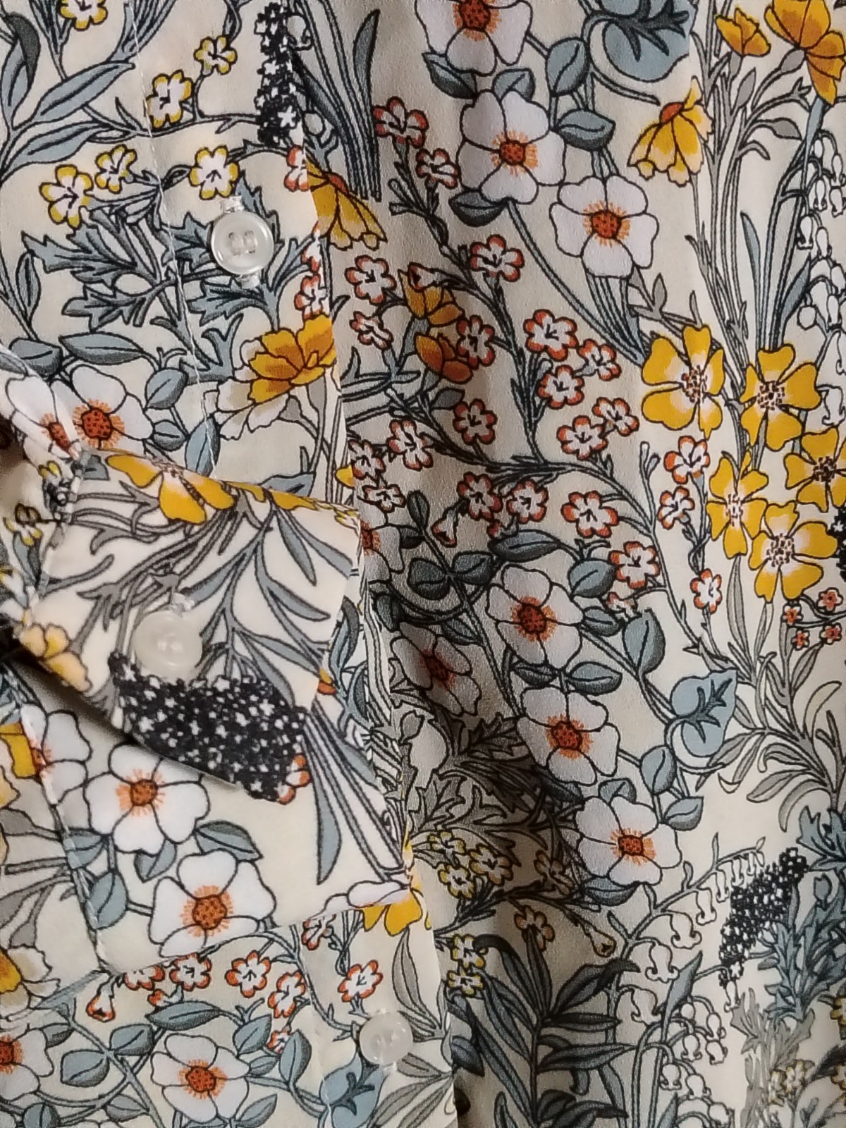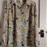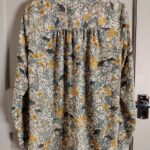 Add a touch of vintage-inspired charm to your wardrobe with this beautiful H&M blouse. Featuring a delicate wildflower botanical print in warm mustard and earthy tones, this lightweight 100% polyester shirt is perfect for layering or wearing tucked into high-waisted trousers. Includes a smart collar, button-down front, and gathered back detail for a flattering drape.