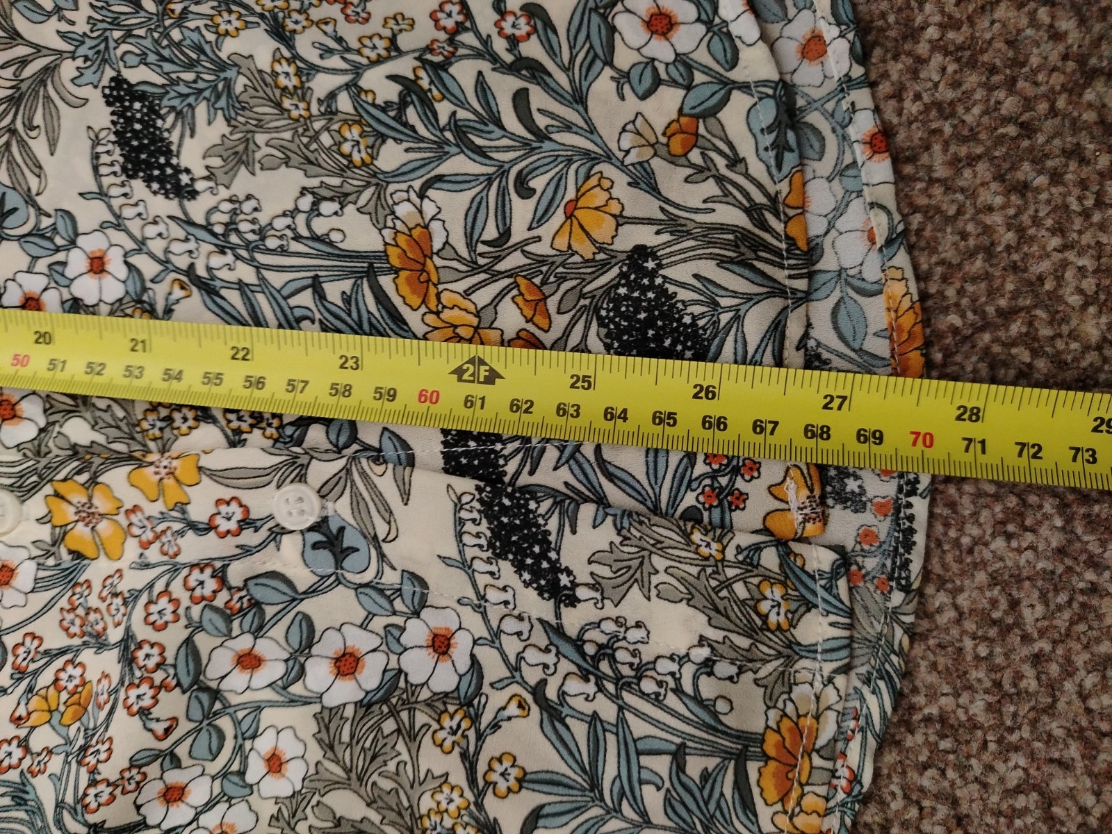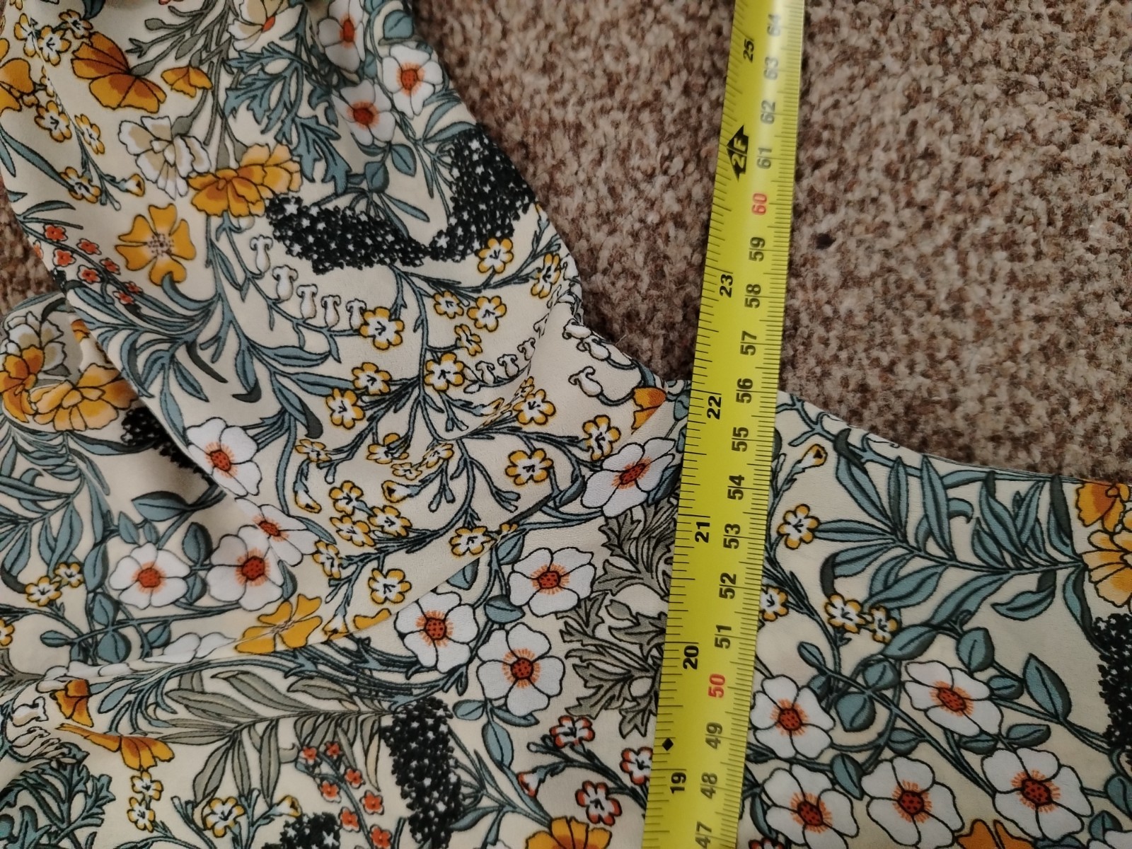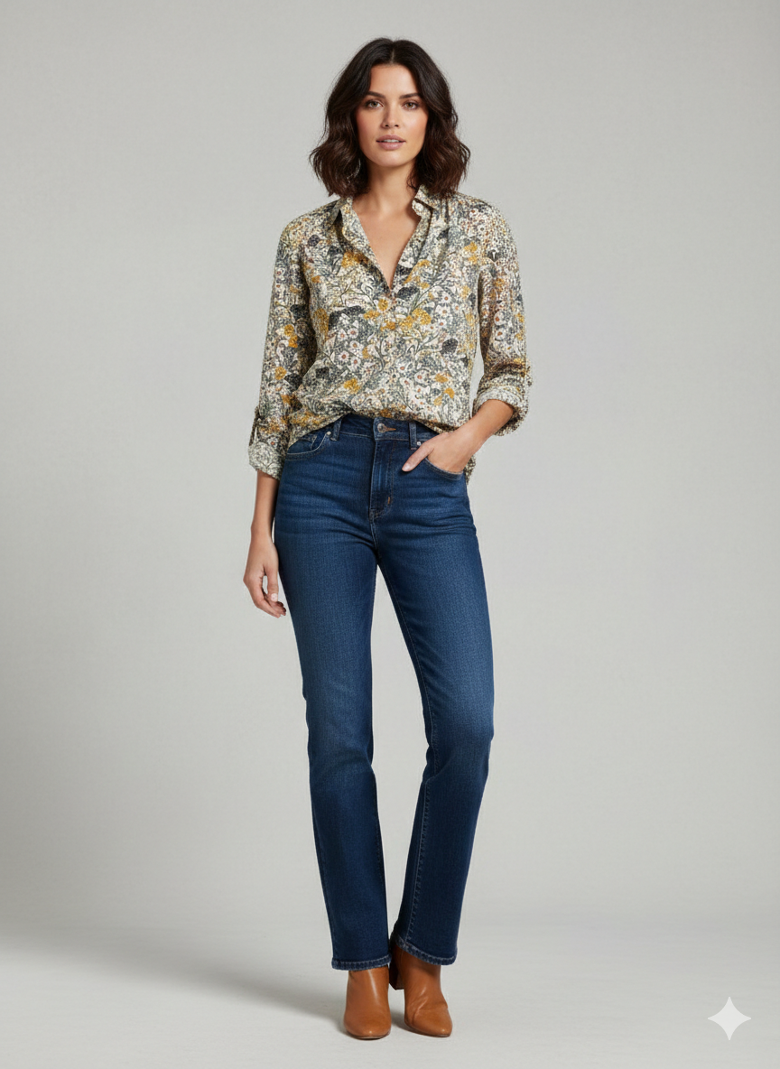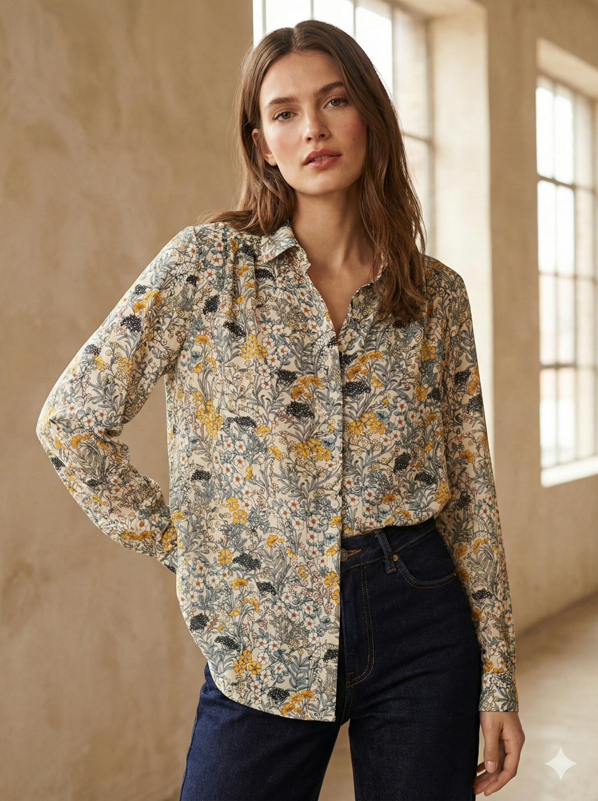 Add a touch of vintage-inspired charm to your wardrobe with this beautiful H&M blouse. Featuring a delicate wildflower botanical print in warm mustard and earthy tones, this lightweight 100% polyester shirt is perfect for layering or wearing tucked into high-waisted trousers. Includes a smart collar, button-down front, and gathered back detail for a flattering drape.