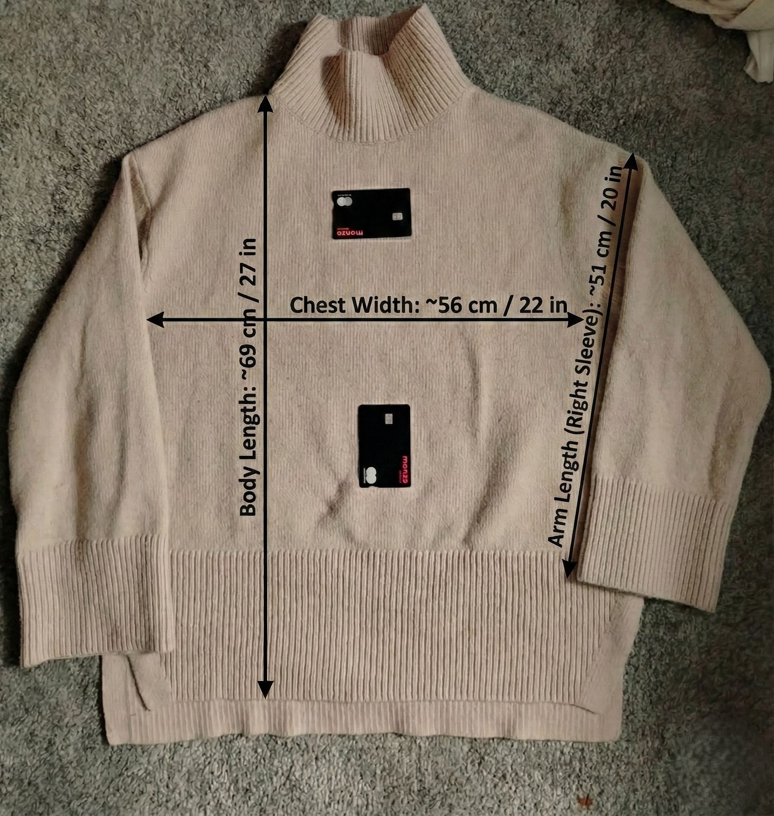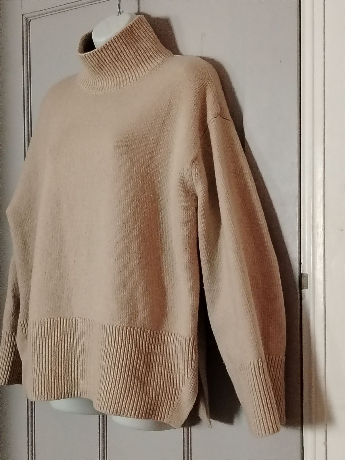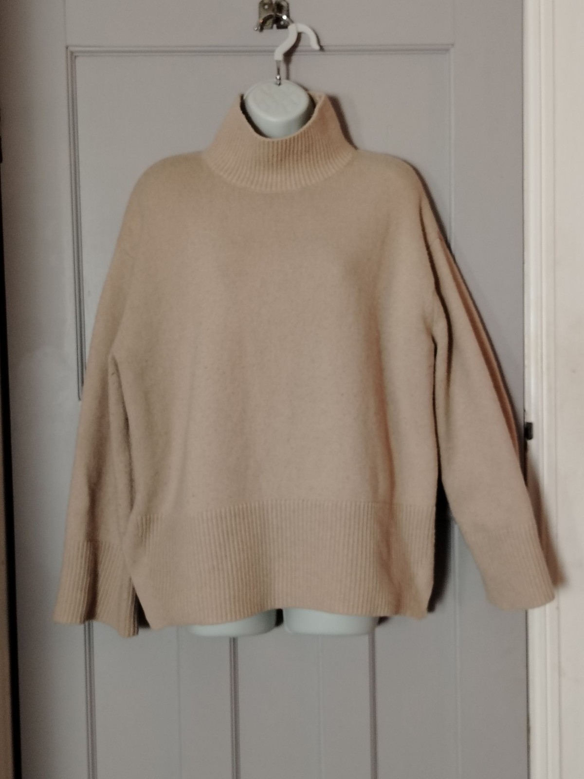 Be the first to review “H&M Sweater Womens S Turtleneck Oversized Chunky Knit Ribbed Hem Side Slit Beige”