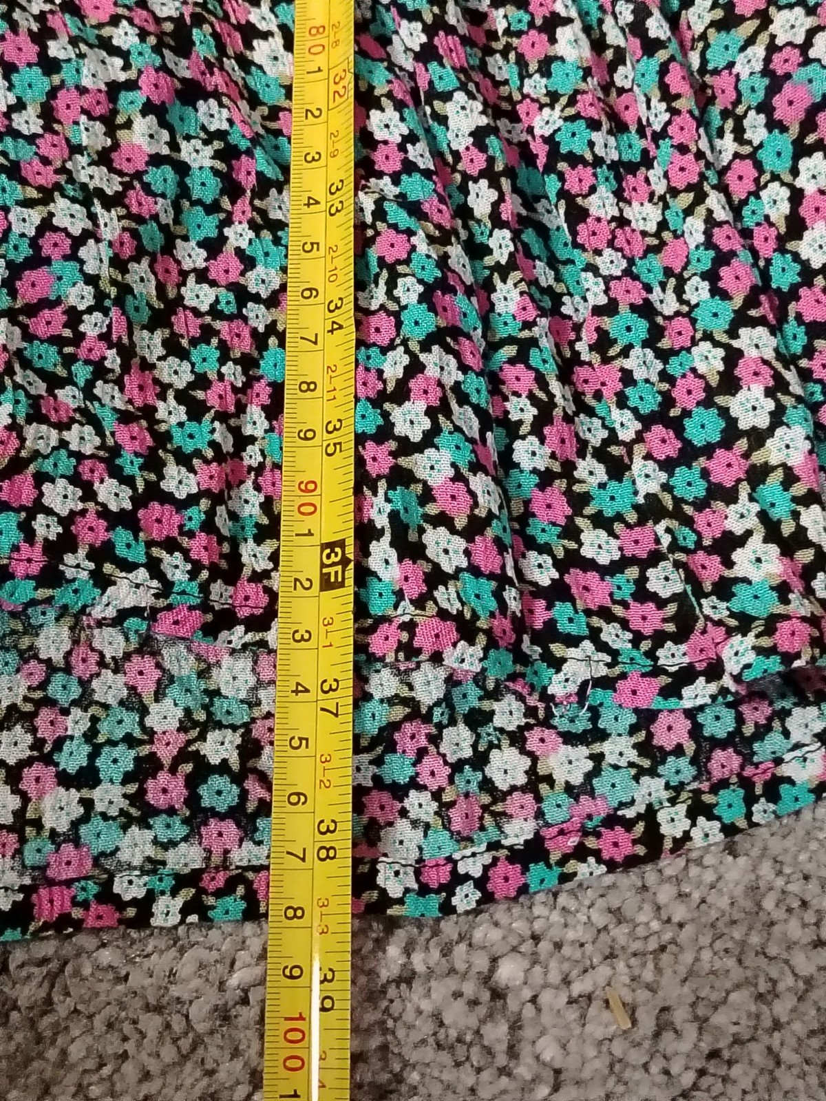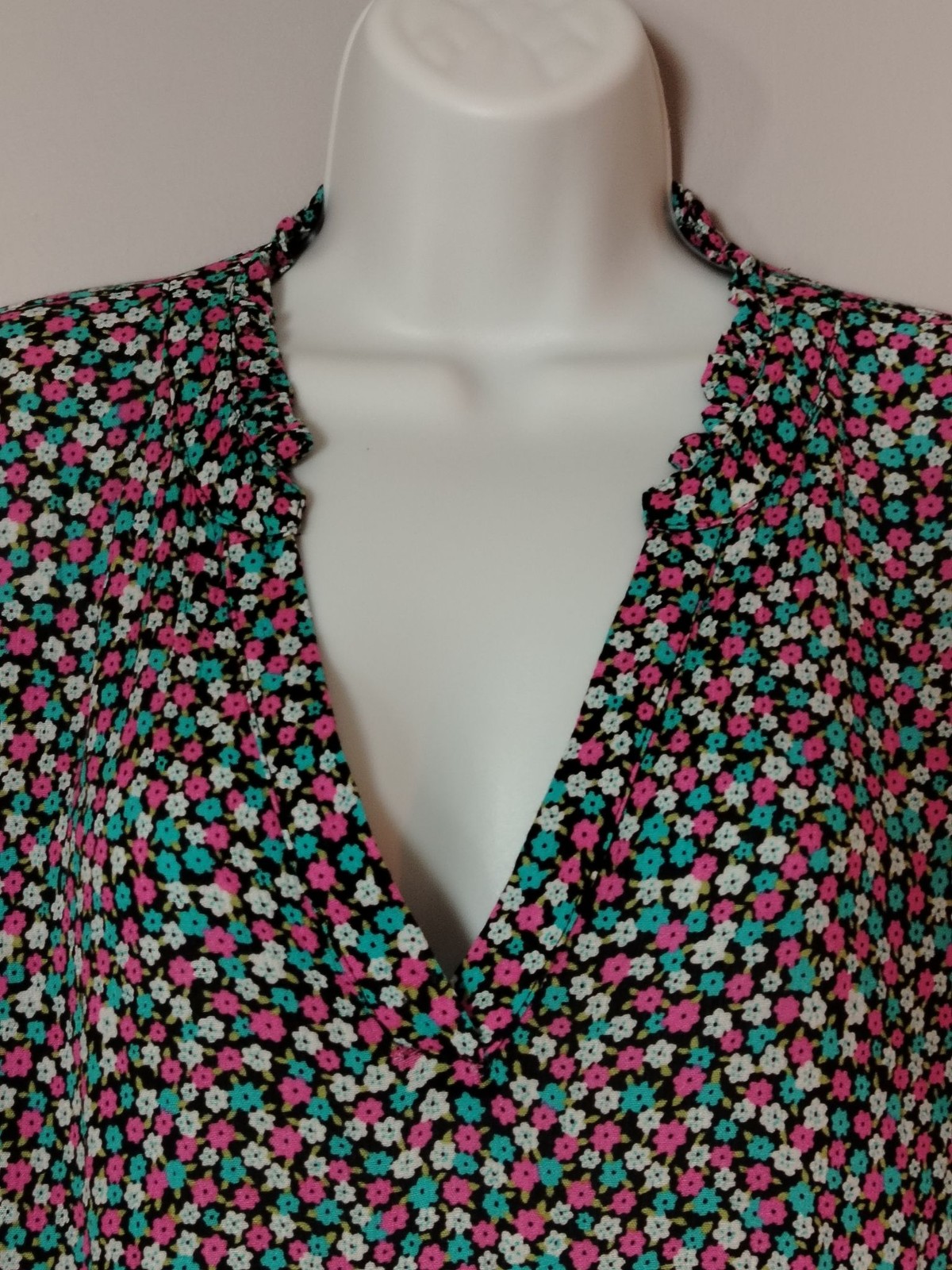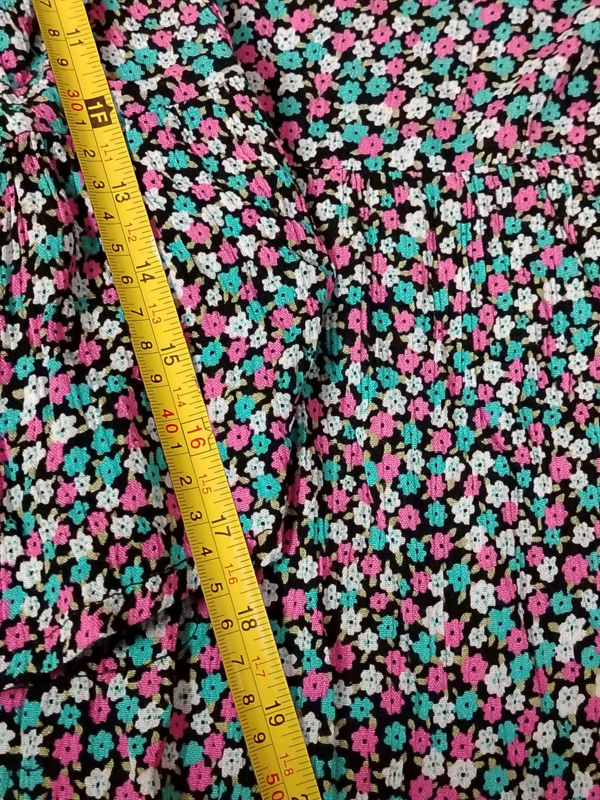 Color: Black with pink, teal and white floral print