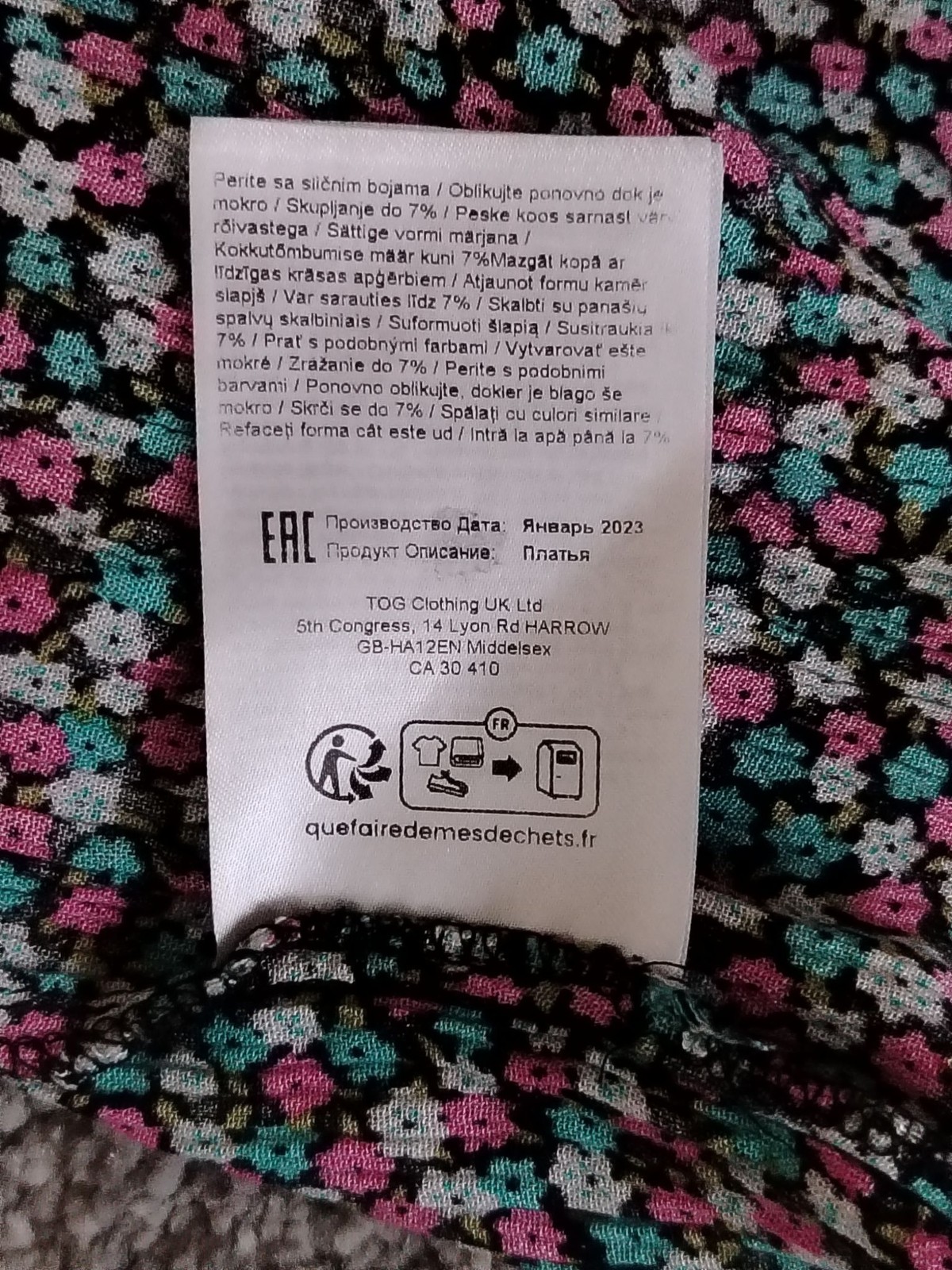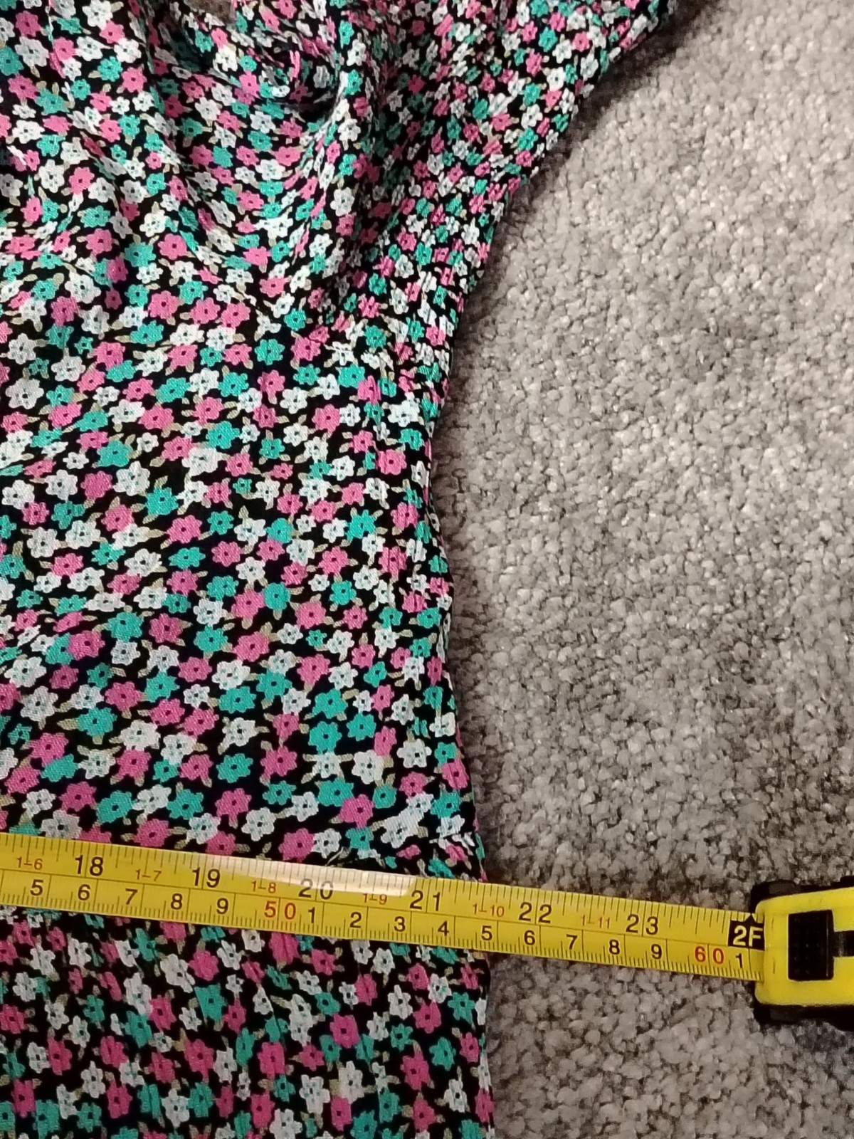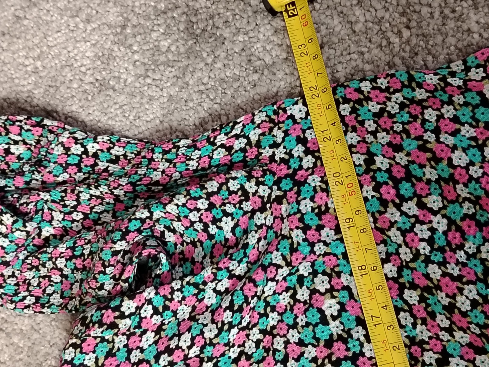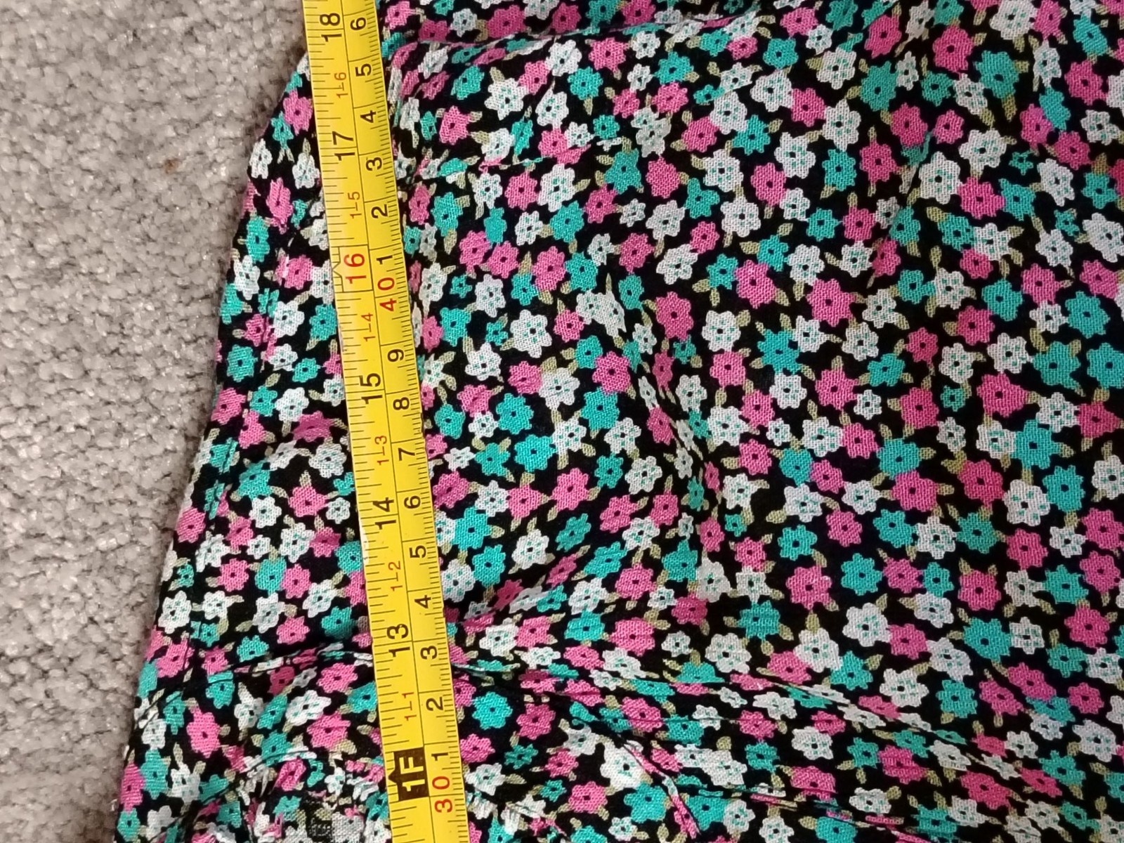 Color: Black with pink, teal and white floral print