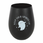 Raise a toast to the spooky season with this stylish stemless glass, adorned with a playful ghost print and the phrase ‘Keep Your Spirits Up.’ A great addition to Halloween parties or cosy nights in. 500ml capacity. Do not microwave. Hand wash only.