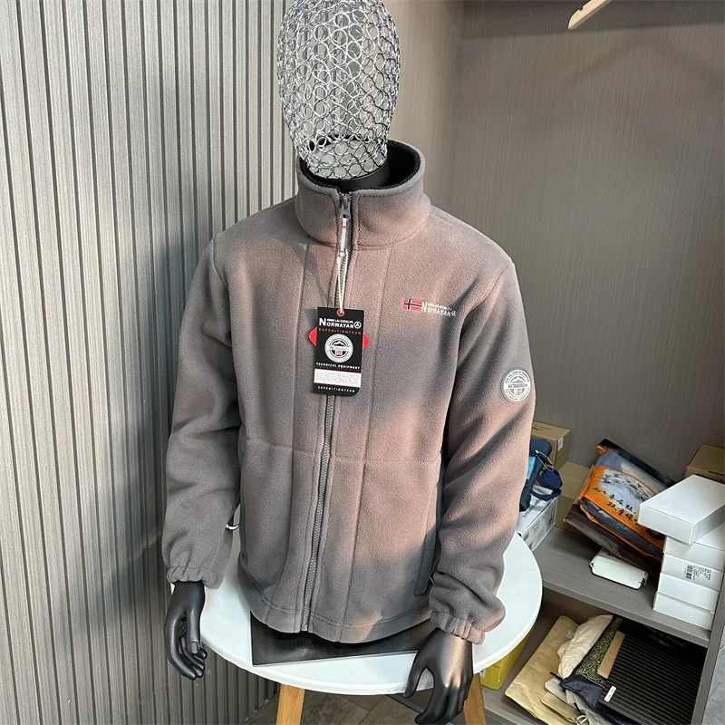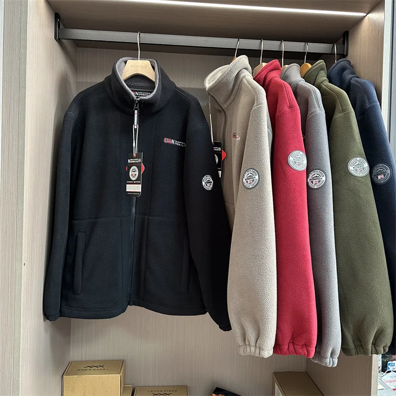 挪威订单!加绒加厚!秋冬男士保暖防寒摇粒绒立领抓绒夹克外套