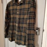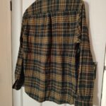 M&S Shirt Mens M Khaki Green Plaid Long Sleeve Button Up Cotton Flannel Soft