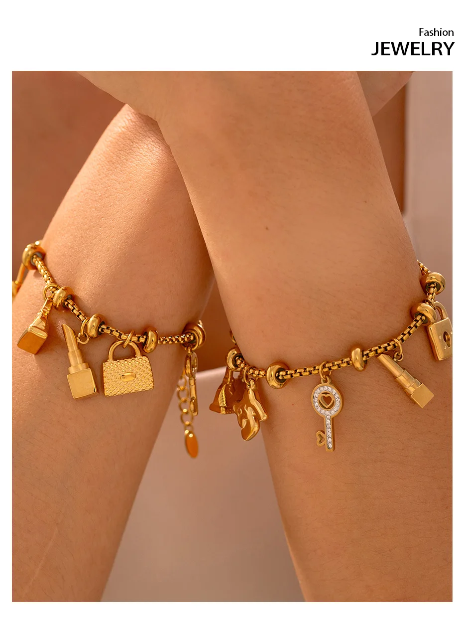 Multi Pendant Stainless Steel Bracelets For Women Gold Plated Waterproof No Tarnish Women's Charm Bracelet Luxury Woman Jewelry
