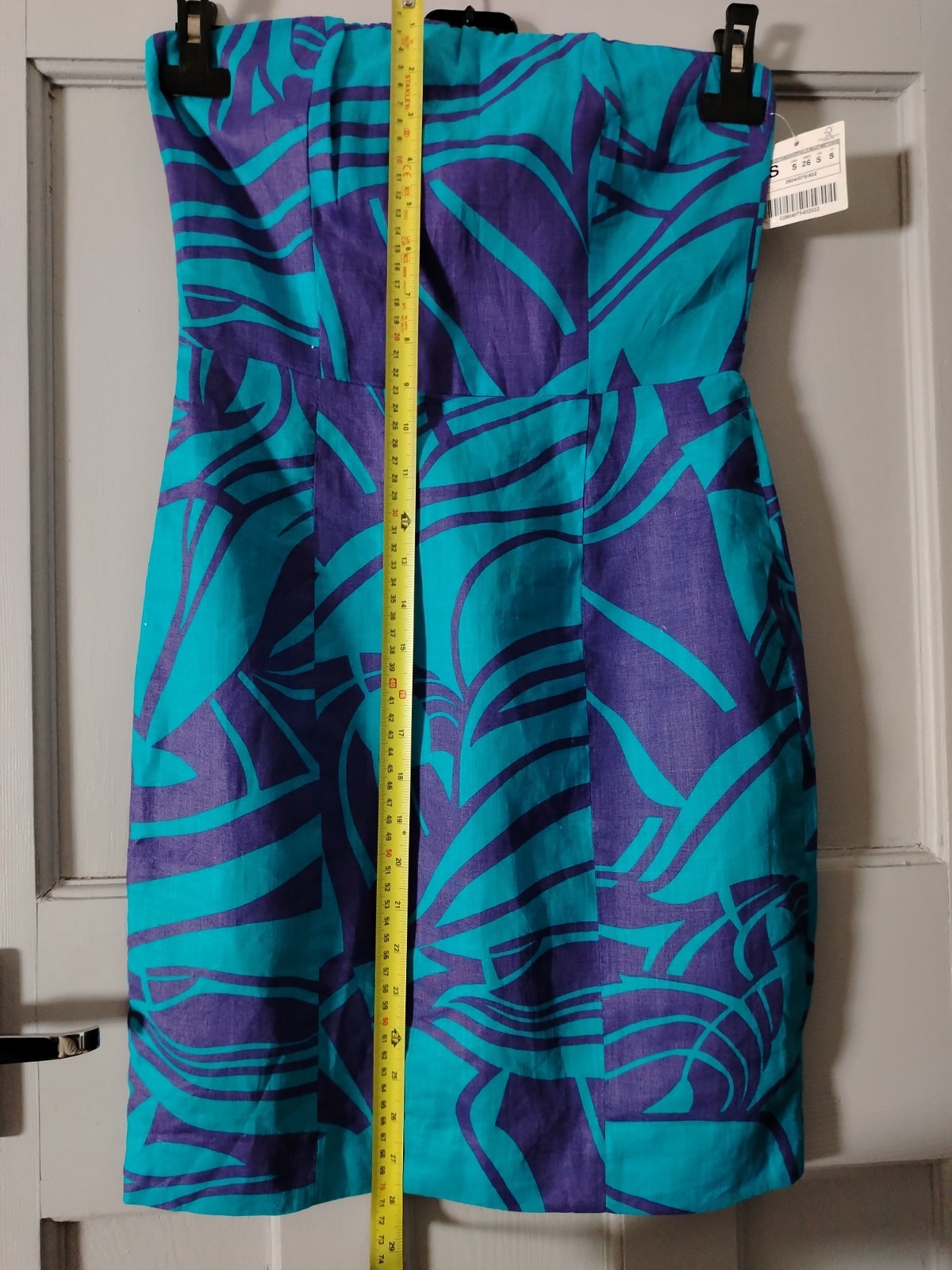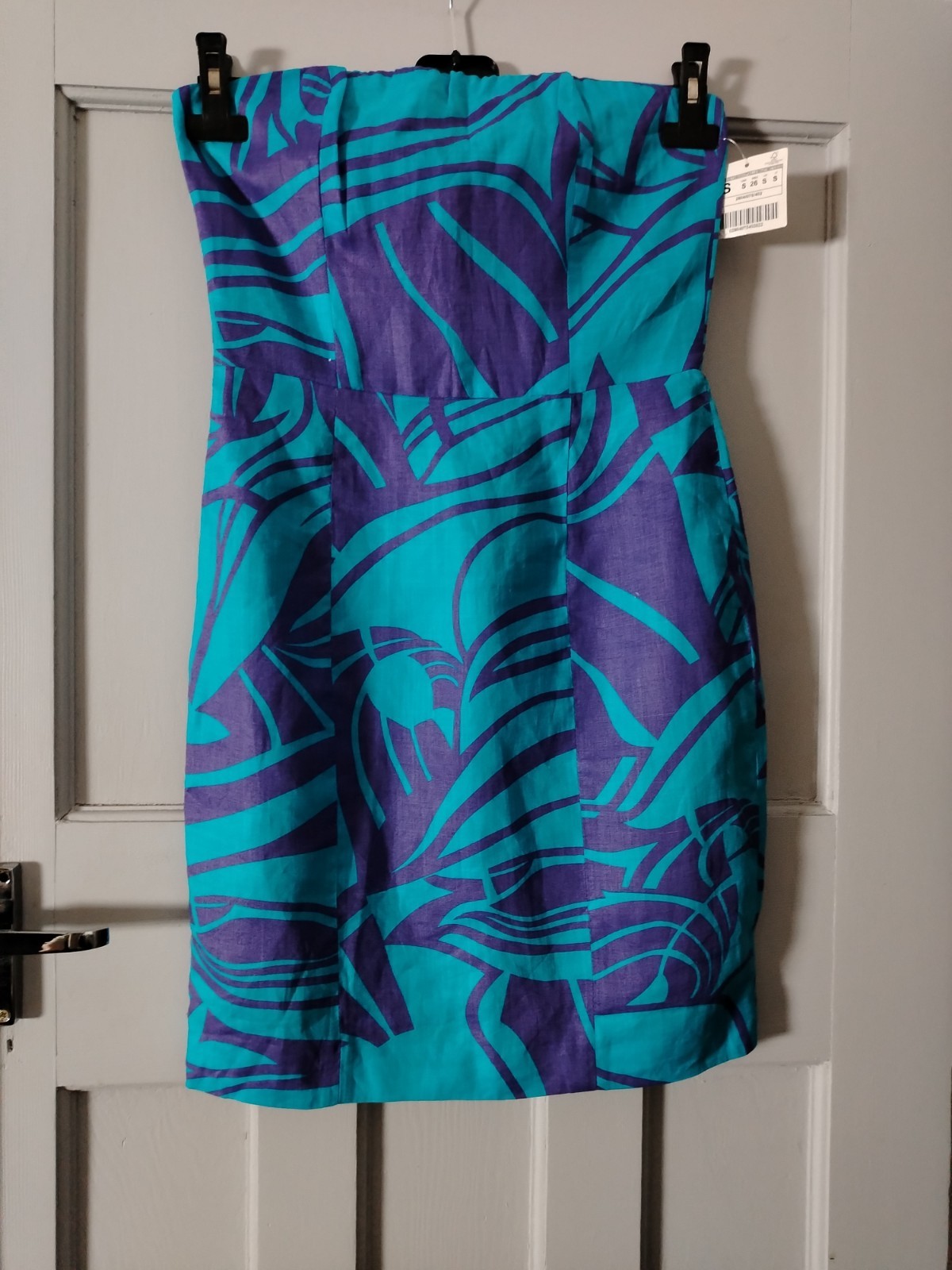 #zara #zaradress #zarabasic #straplessdress #bandeaudress #minidress #summerdress #holidayfashion #teal #purple #abstractprint #boldprint #ramie #linenblend #size8 #uk8 #small #newwithtags #bnwt #nwt #vinteduk #vintedseller #bundleandsave