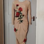 - Design: Nude/beige base with a striking red rose floral pattern.