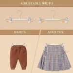 Our Clothes Hangers for Pants are designed with a space-saving feature that helps optimize your closet space, keeping it organized and tidy. With easy-to-use clips, our hangers provide extra storage options for items that are difficult to hang without clips.