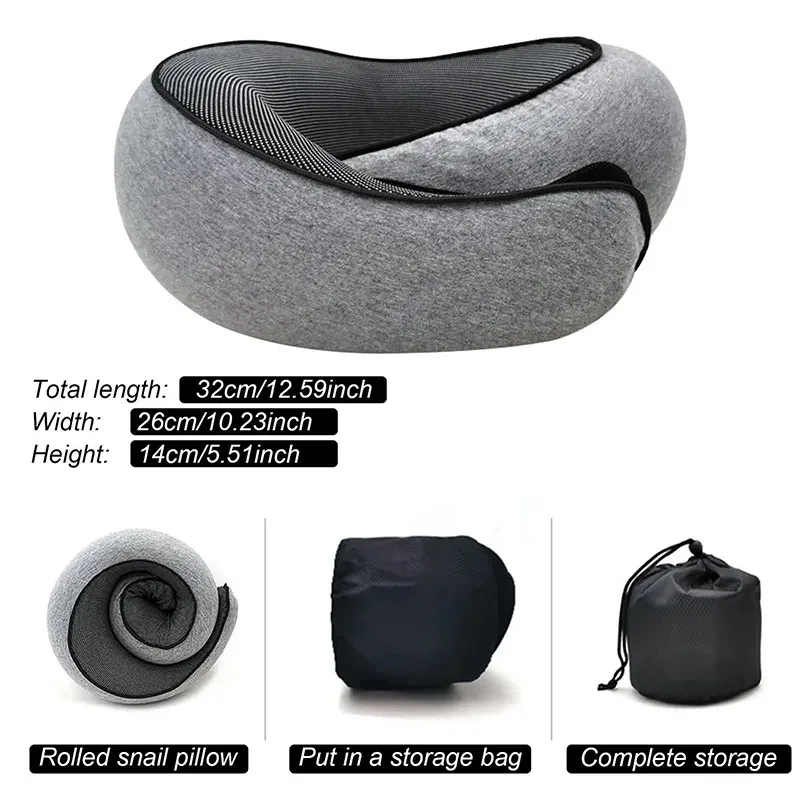 Portable Adjustable Travel Neck Pillow Memory Foam U-shaped Pillow Snail Style Travel Neck Support Soft Noon Break Sleep Pillow