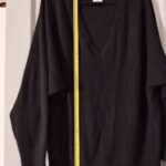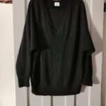 This is a premium piece from the H&M Studio collection, known for its higher quality cuts and fabrics compared to the standard range. The design features a deep V-neck and a relaxed, slightly oversized fit with dropped shoulders and batwing-style sleeves, creating a contemporary silhouette.