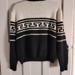 Add a classic monochrome layer to your wardrobe with this authentic Topshop knitted jumper. Featuring a striking Greek key/maze geometric pattern, this sweater is crafted from a soft blend containing 14% Angora for a cozy, fuzzy feel.