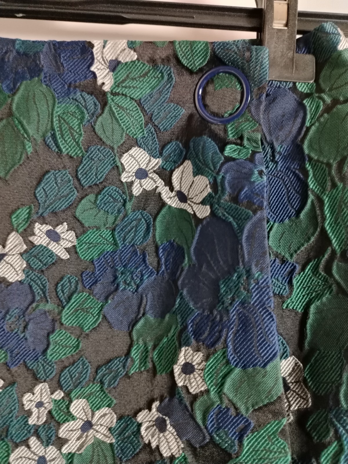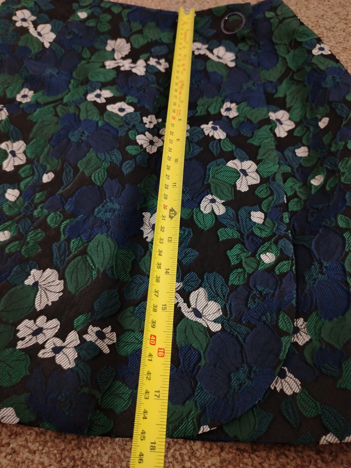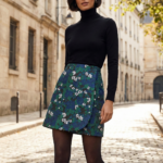 Elevate your wardrobe with this stunning Whistles mini skirt. Featuring a rich, textured floral jacquard weave in deep forest green and navy, this A-line piece offers a sophisticated “dark floral” aesthetic perfect for both office wear and evening events.