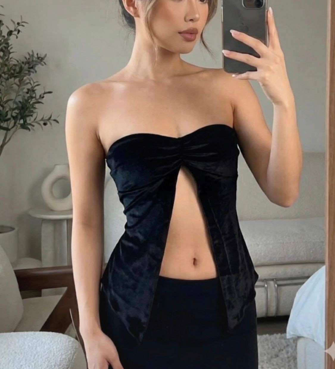 PrettyLittleThing Bustier Womens S Black Velvet Strapless Corset Top Ruched