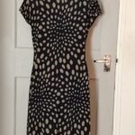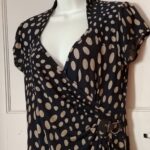 Promod Dress Womens L Navy Polka Dot Wrap VNeck Buckle Short Sleeve Knee Length