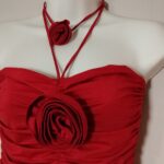 - Straps: Halterneck tie strings with an integrated floral corsage/choker detail.