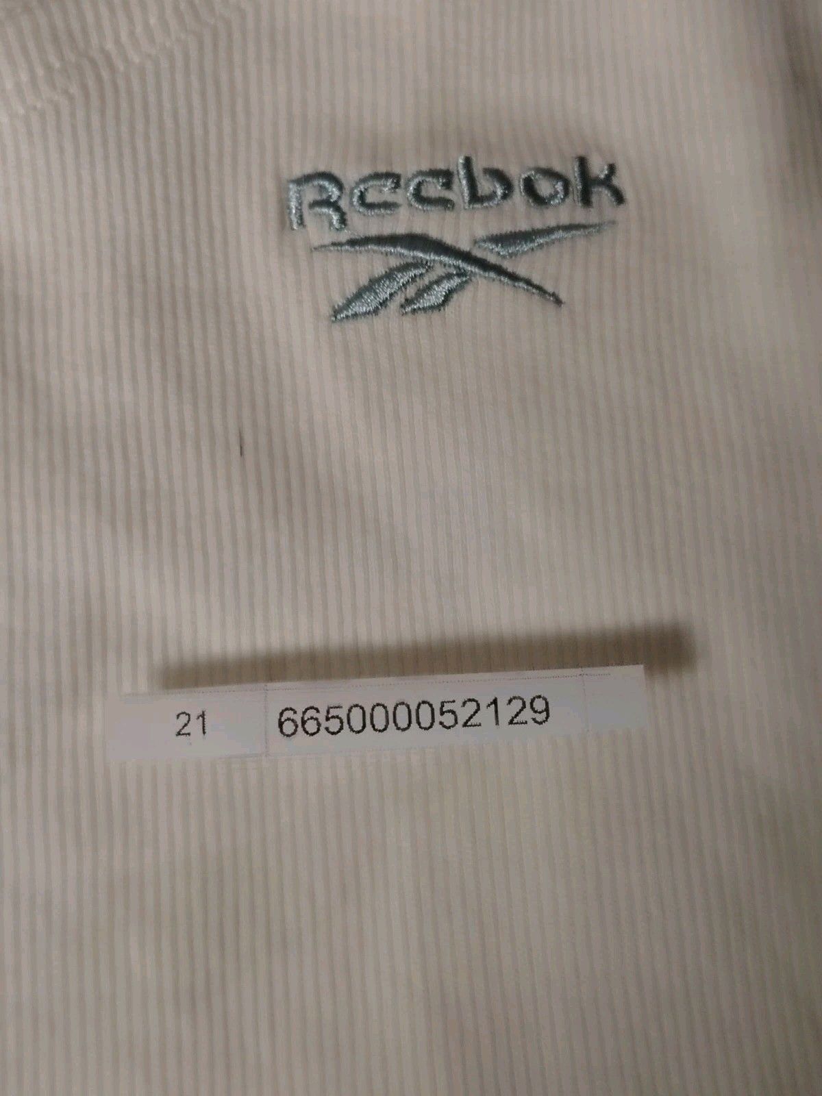 Add a touch of retro sport style to your wardrobe with this versatile Reebok one-shoulder crop top. Crafted from a stretchy ribbed fabric in a lovely cream/off-white shade, it features the classic Reebok logo embroidered in blue on the chest. It’s the perfect top for festivals, summer casual wear, or layering.