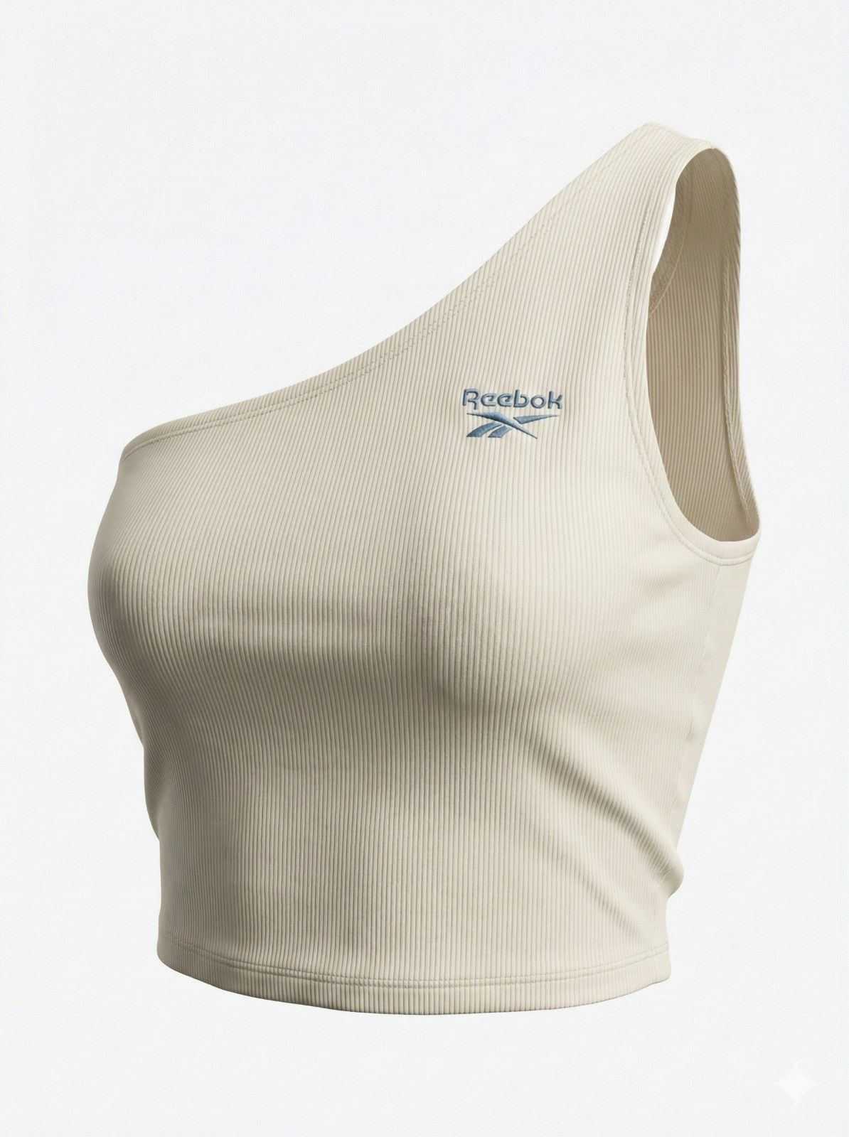 Reebok One Shoulder Crop Top Cream Ribbed Size XS UK 4-6 BNWT Embroidered Logo