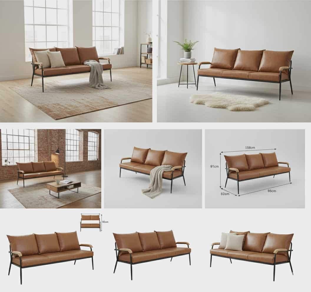 Stylish Modern Industrial 3-Seater Sofa