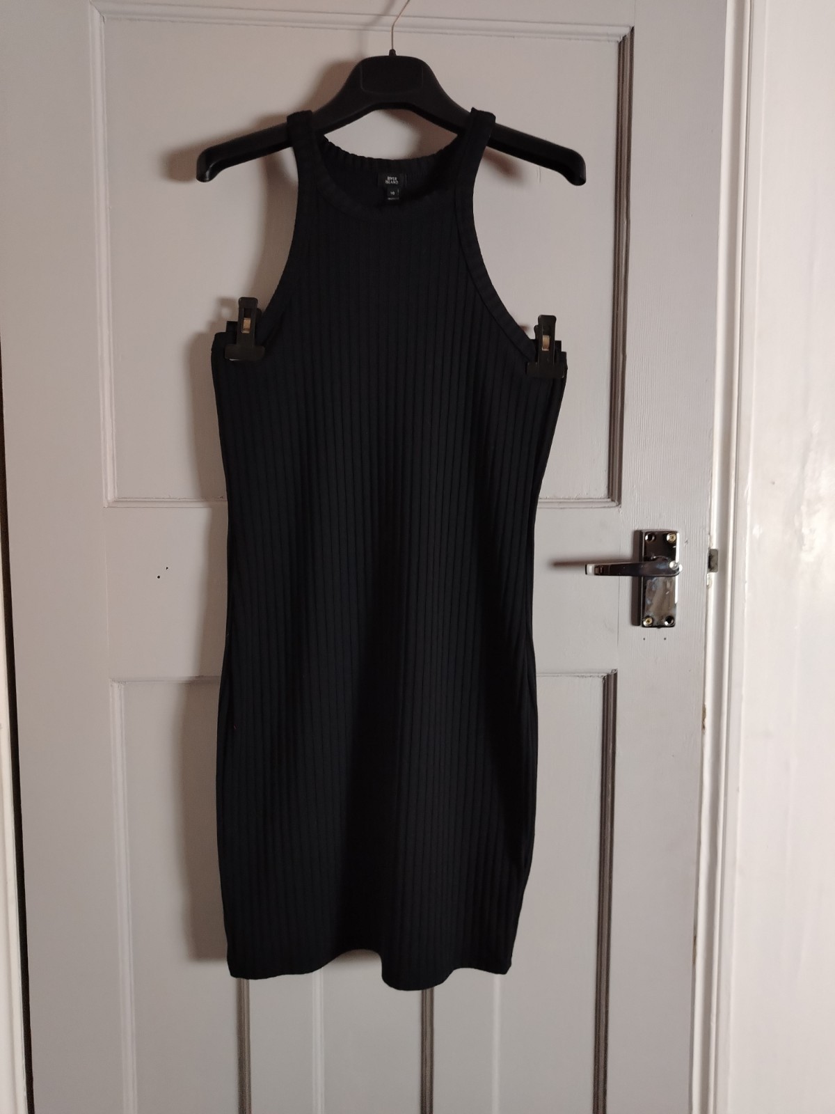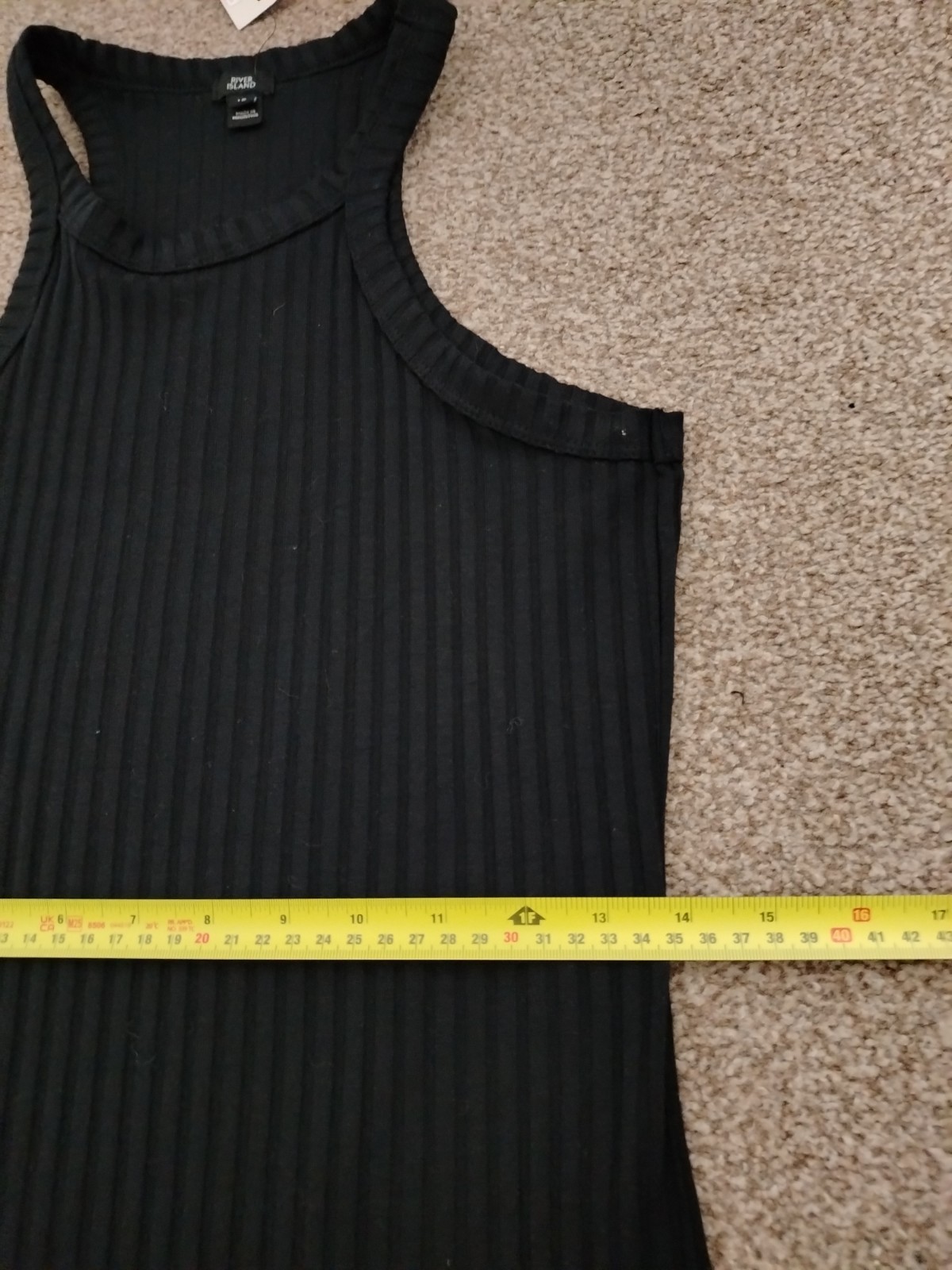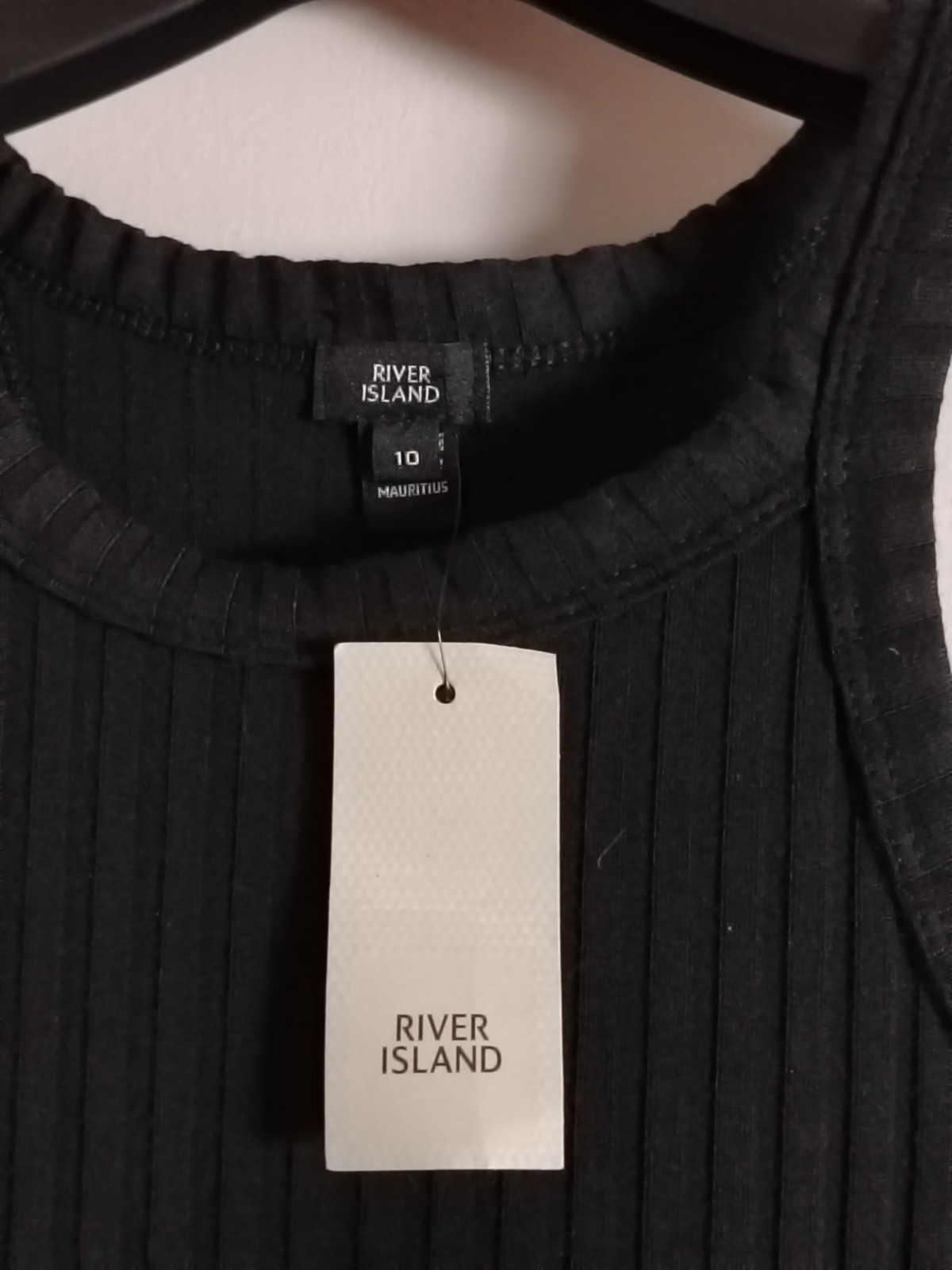 RIVER ISLAND Black Ribbed Racerback Midi Dress – Size UK 10 – BNWT