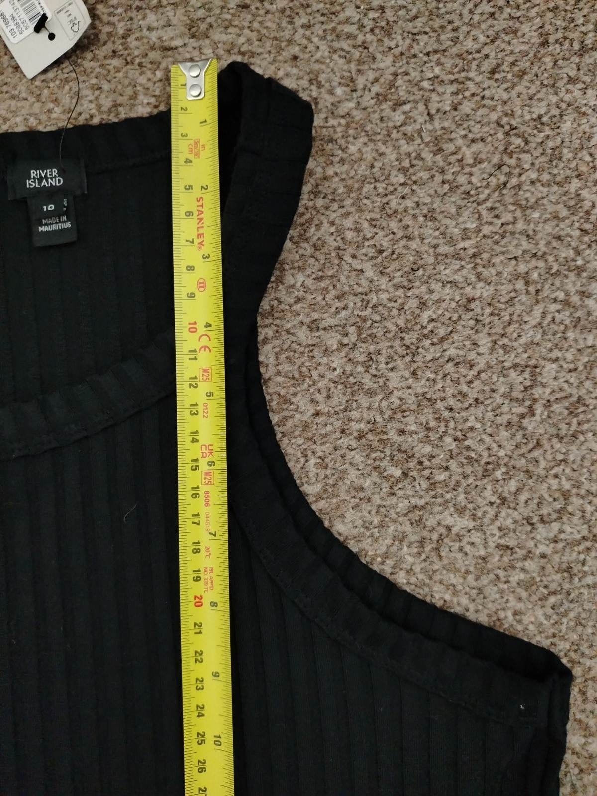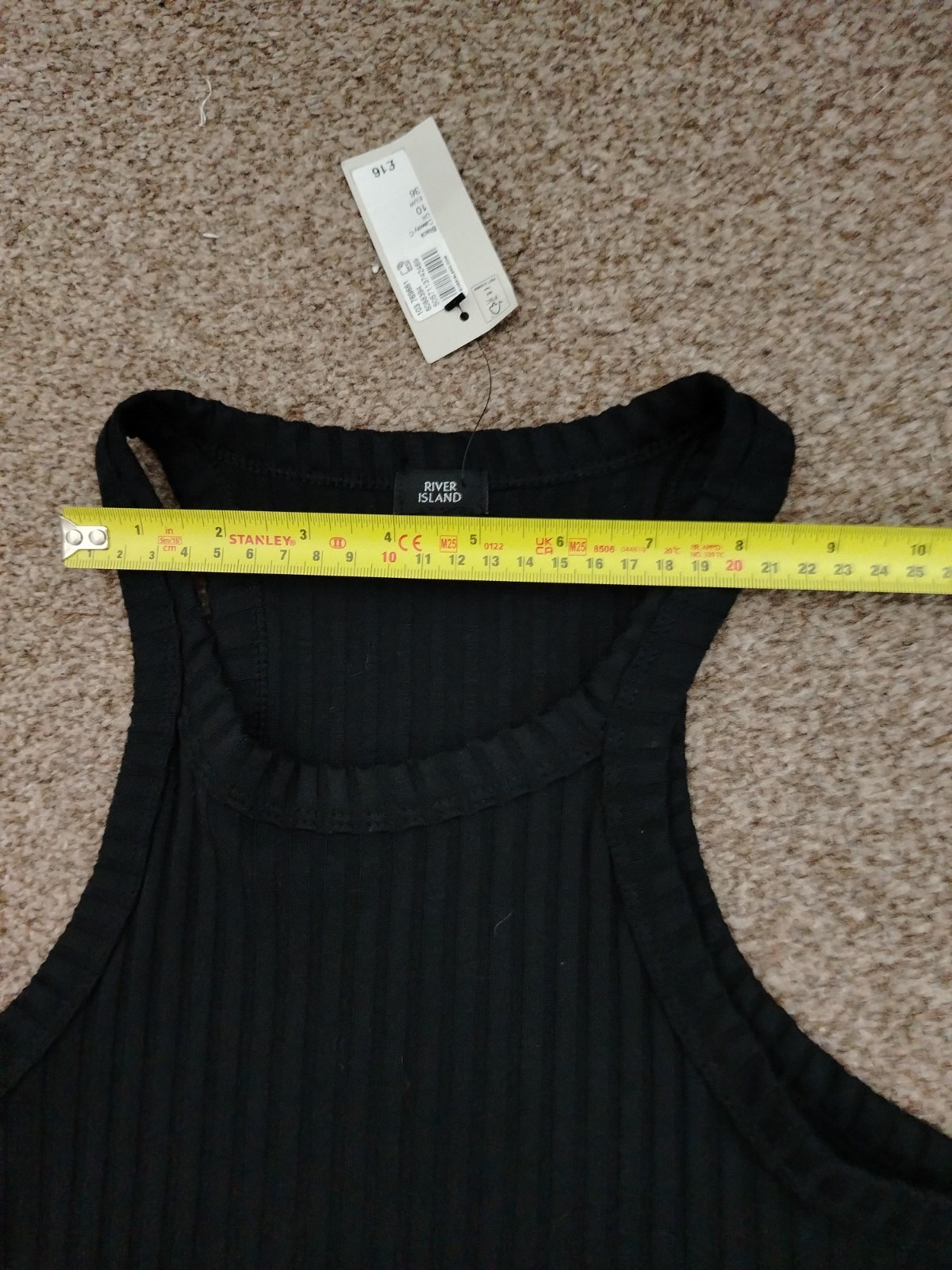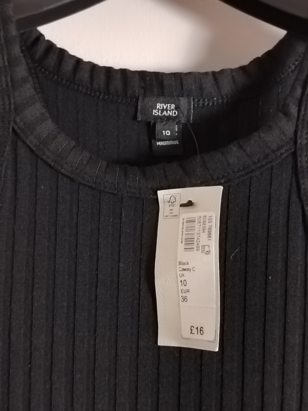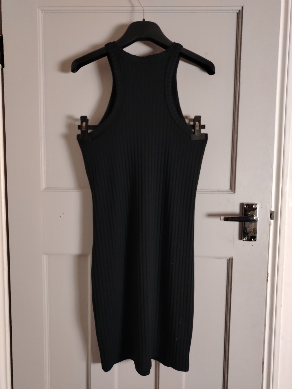 RIVER ISLAND Black Ribbed Racerback Midi Dress – Size UK 10 – BNWT