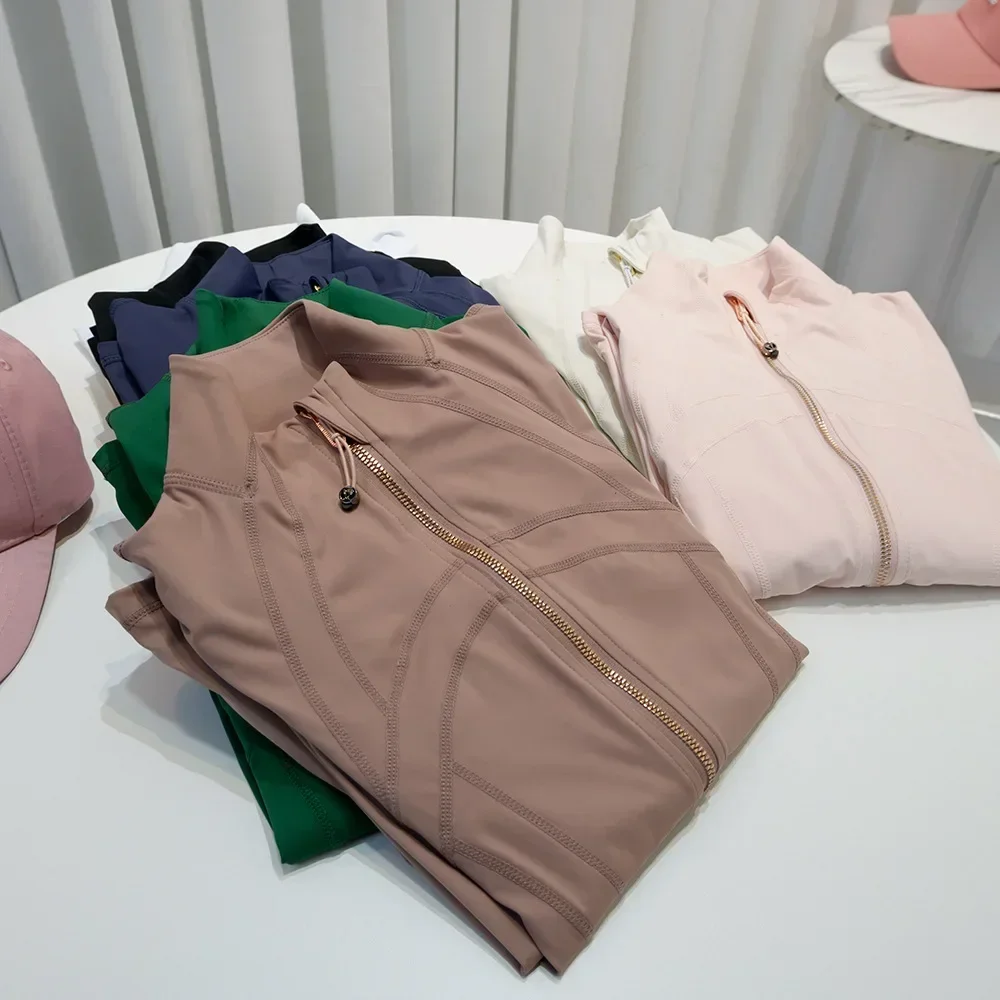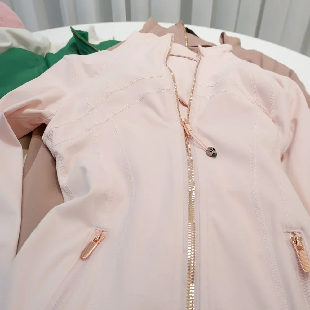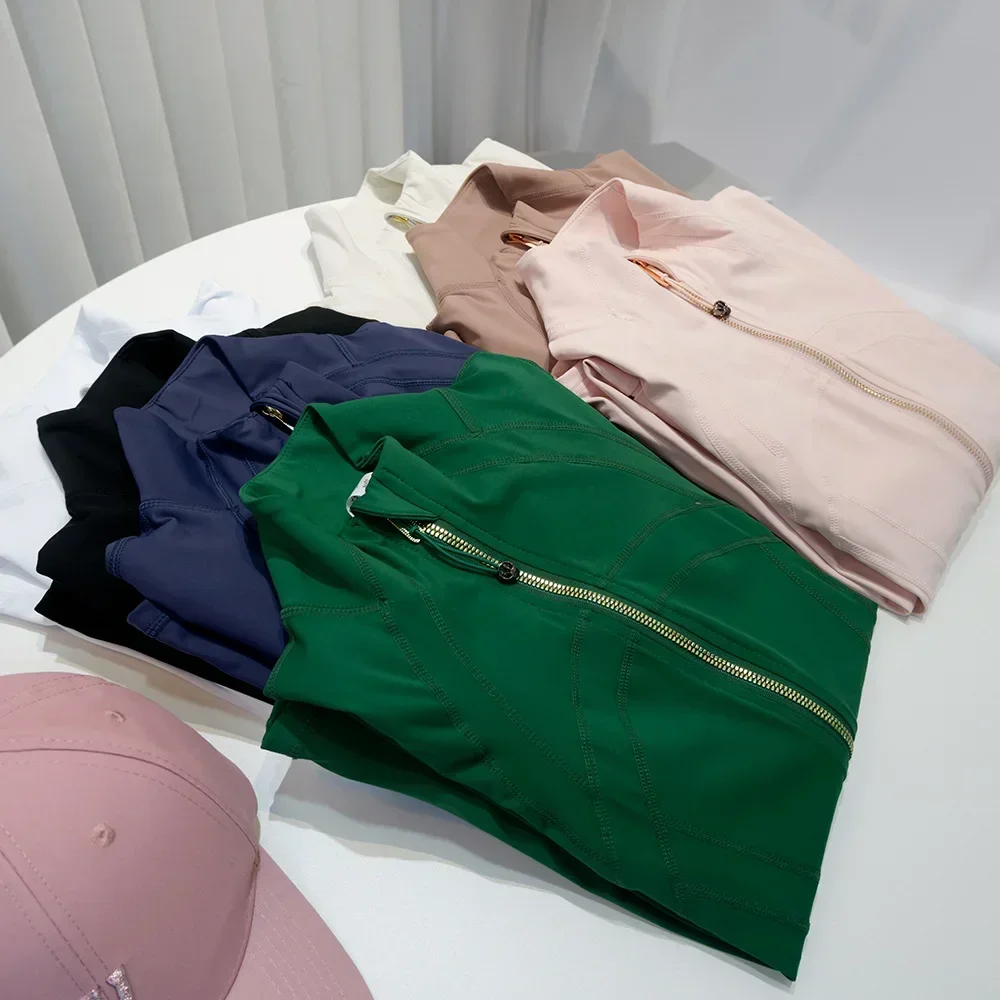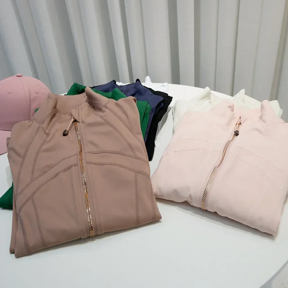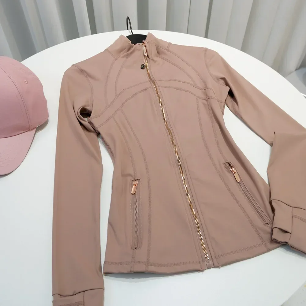 Rose Gold Zip Jacket Third Generation No Mesh Slim Fit Thin Sport Fitness Yoga Wear Stand Collar Outerwear for Women