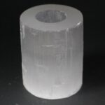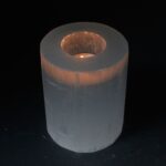 Selenite Candle Holders are shiny and sometimes with whiter areas. Top of each candle holder is polished and the underside is cut flat.