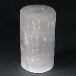 Selenite Candle Holders are shiny and sometimes with whiter areas. Top of each candle holder is polished and the underside is cut flat.