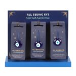 This stunning display includes 24 x All Seeing Eye glass charms which are perfect gifts for loved ones to offer them protection and good luck wherever they go. Also known as the Evil Eye this talisman is a symbol of luck and is believed to deflect misfortune. Each charm is presented on a blue card along with the meaning. Exclusive to Something Different and part of the ‘All Seeing Eye’ collection.