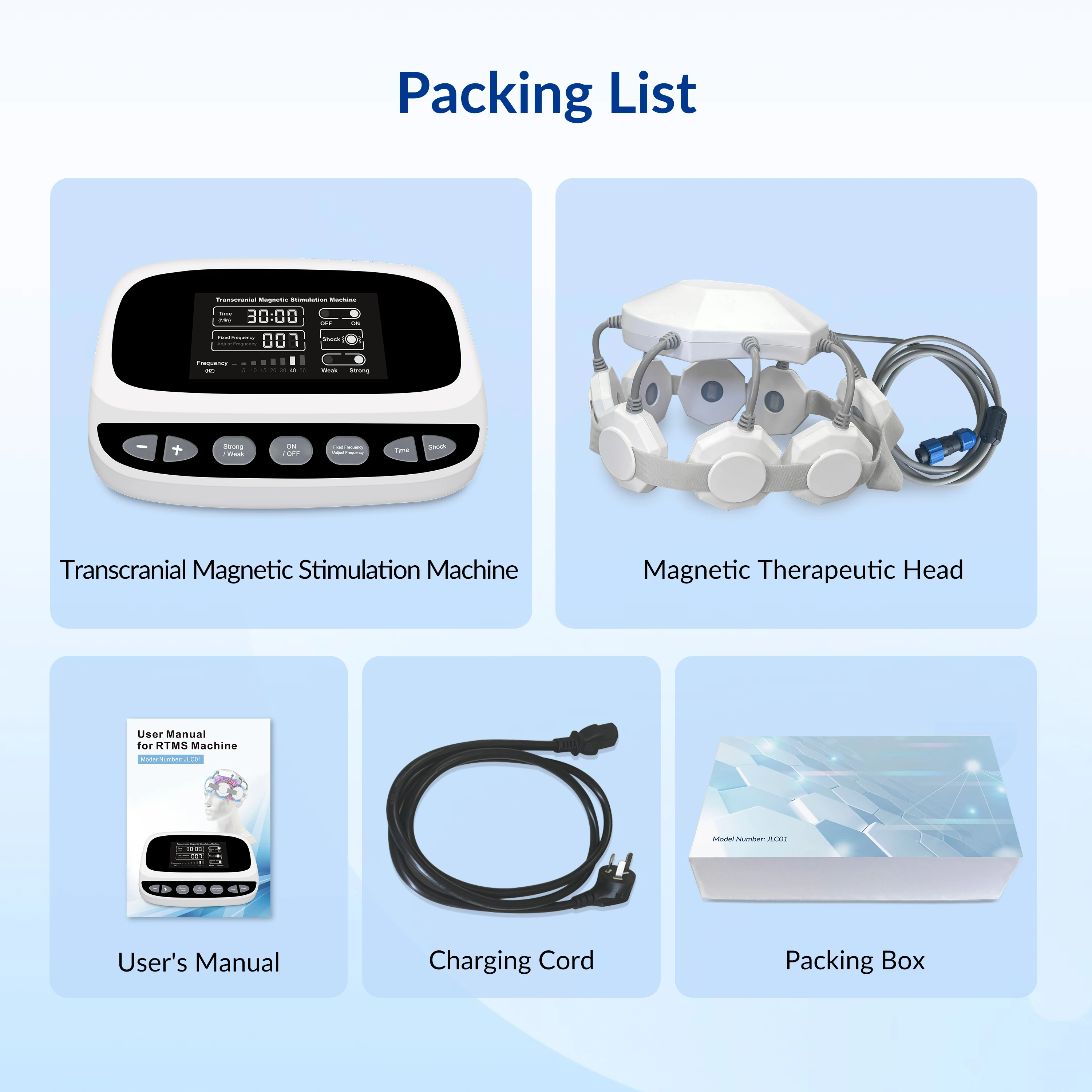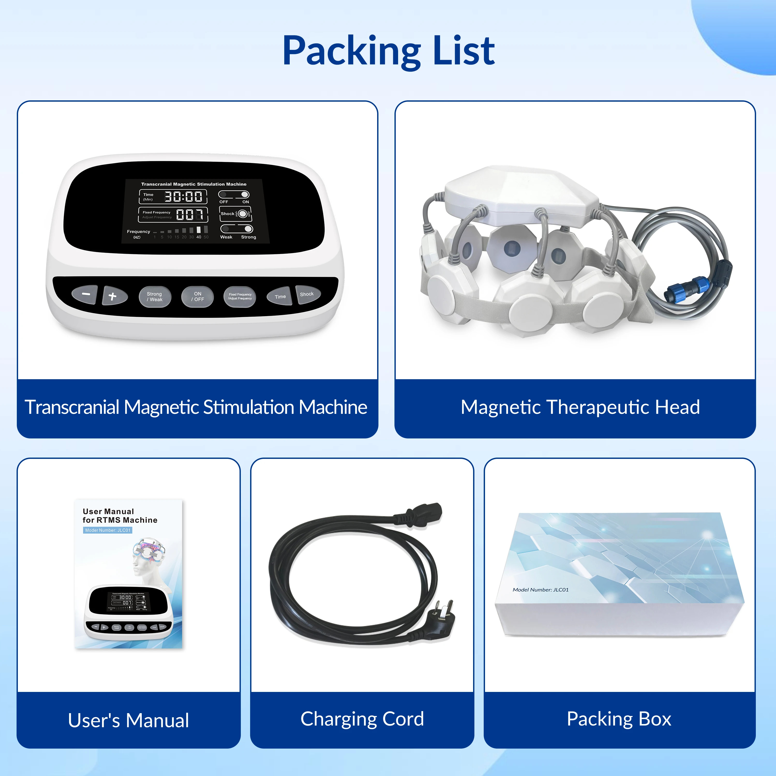 【Includes】The packaging includes: 1 * RTMS machine, 1 * Magnetic Therapeutic Head, 1 * User’s Manual, 1 * Cooling Cord, 1 * Packing Box.This product also comes with a one-year warranty.Convenient to carry and suitable for tms home therapy.We are 100% committed to TMS and brain health. If you have any questions about the effectiveness of tms therapy, please contact us.