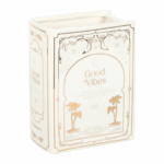 Bring a literary flourish to your space with this white ceramic vase designed in the shape of an upright book. A striking home accessory for book lovers, perfect for displaying fresh blooms or dried flowers on bookshelves, desks, or reading nooks. 600ml.