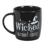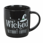Start the day with a cackle and a caffeine fix using this wickedly fun mug featuring the phrase “Wicked Without Coffee” and a pointed witch hat design. A must-have for morning brews and those who need their potion before casting kindness. 340ml capacity. Microwave safe. Dishwasher safe.