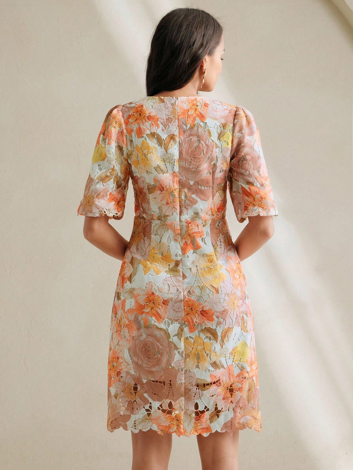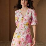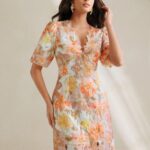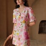 Be the first to review “Women V-Neck Short Puff Sleeve Ruffled A-Line Lace Floral Print Dress, Summer, Festival, Holiday, Vacation, Elegant”